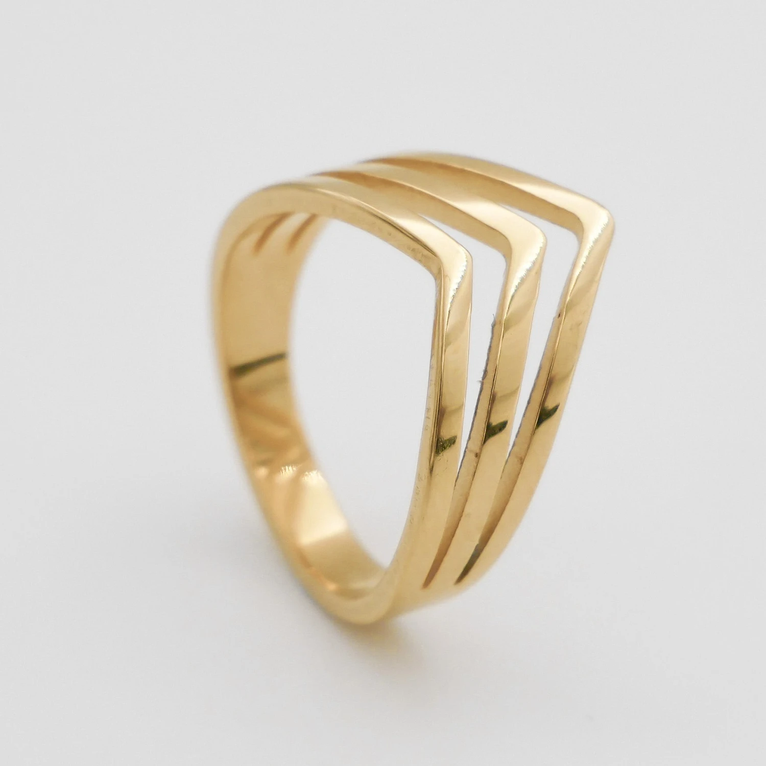 Our Gold plated Chevron ring is beautifully crafted and exudes elegance. The 3 strand structure creates a layered feel, adding character to your jewellery collection.