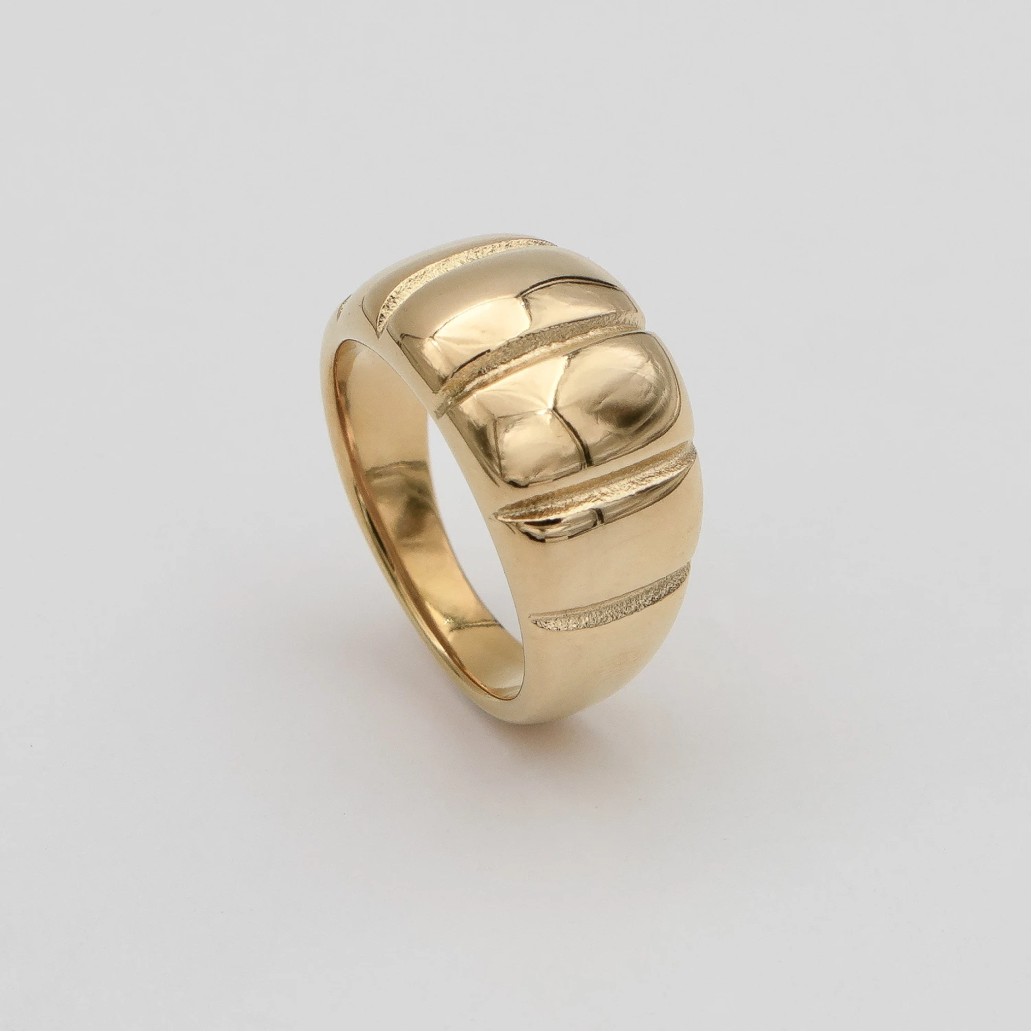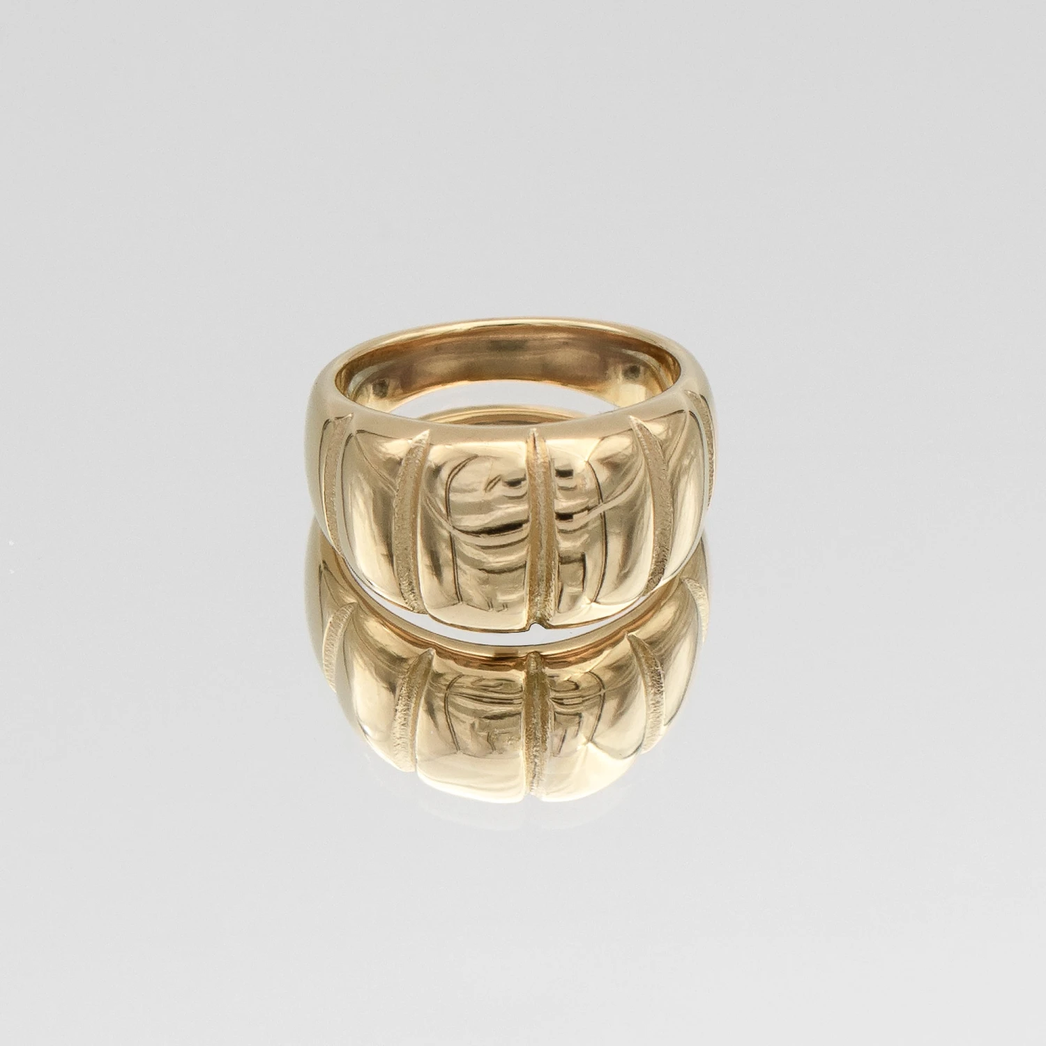 Enhance your collection with our Alessia Chunky Ribbed Ring, an exquisite and exclusive accessory featuring a fluted design that plays with the interplay of light and shadow. The carefully crafted ridges add depth and texture, while the polished finish guarantees a comfortable fit, making it an ideal choice for daily wear or as a striking statement piece.