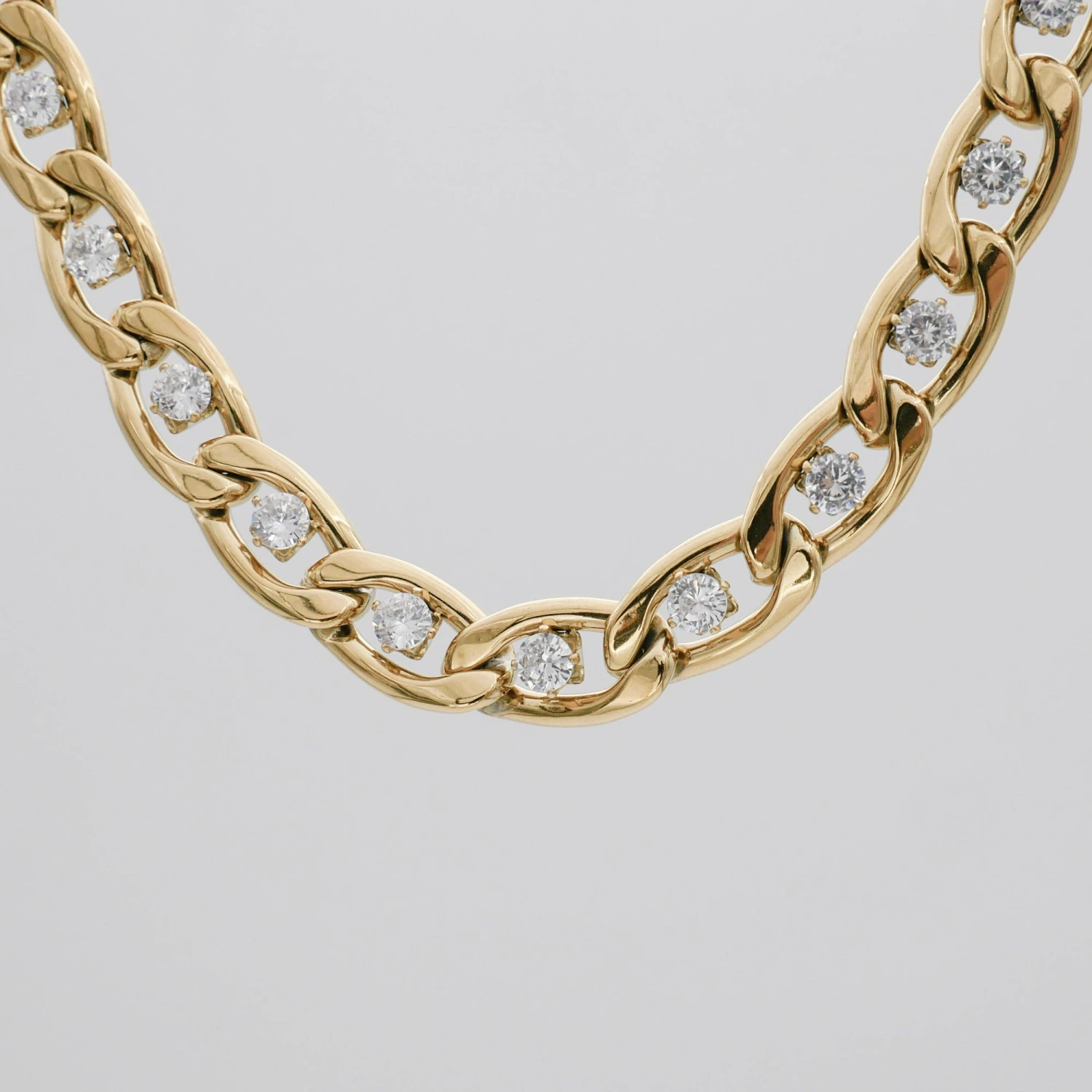 The Alina Chain Necklace is beautifully crafted and is the perfect statement piece. Featuring the hand set Cubic Zirconia stones to keep it shining from all angles, supported by a thick cuban chain. Pair it with its matching bracelet here.