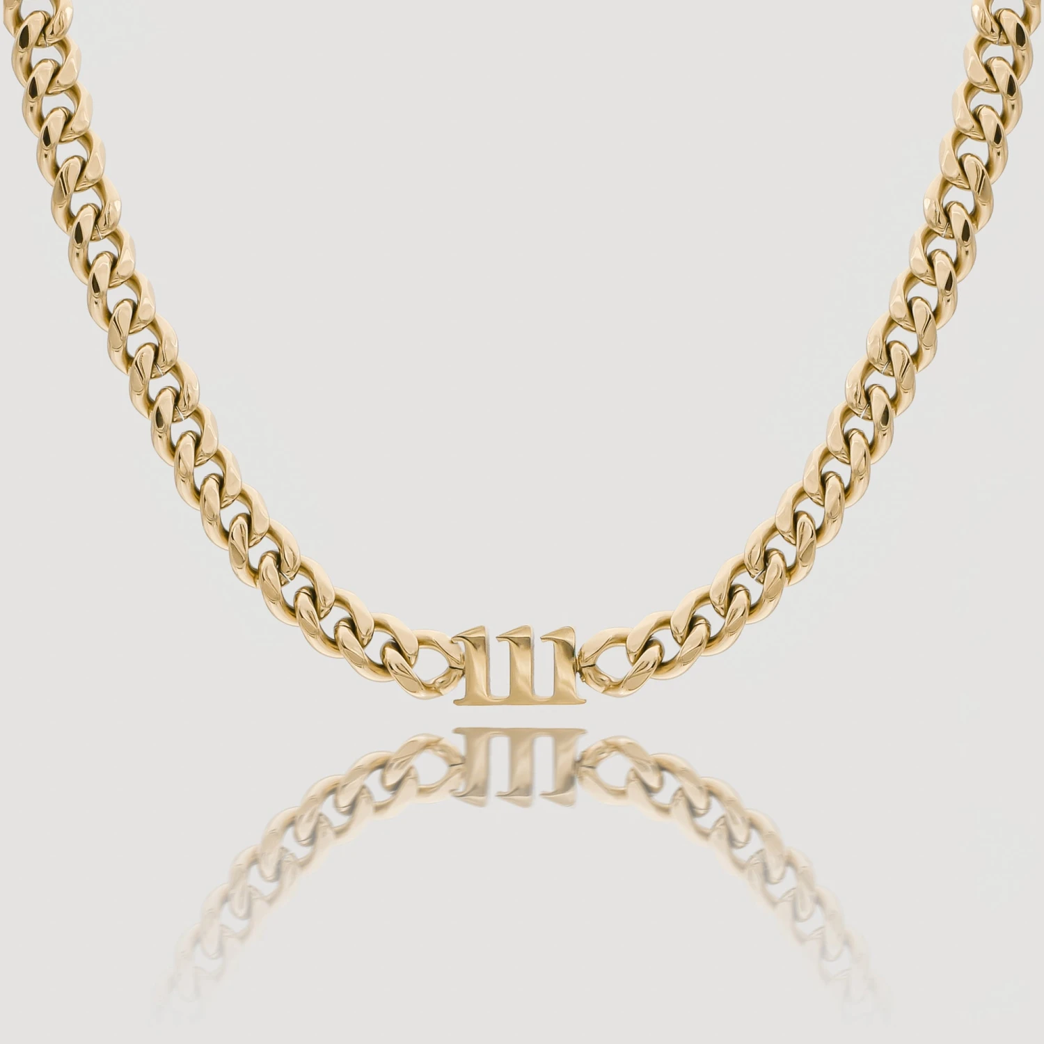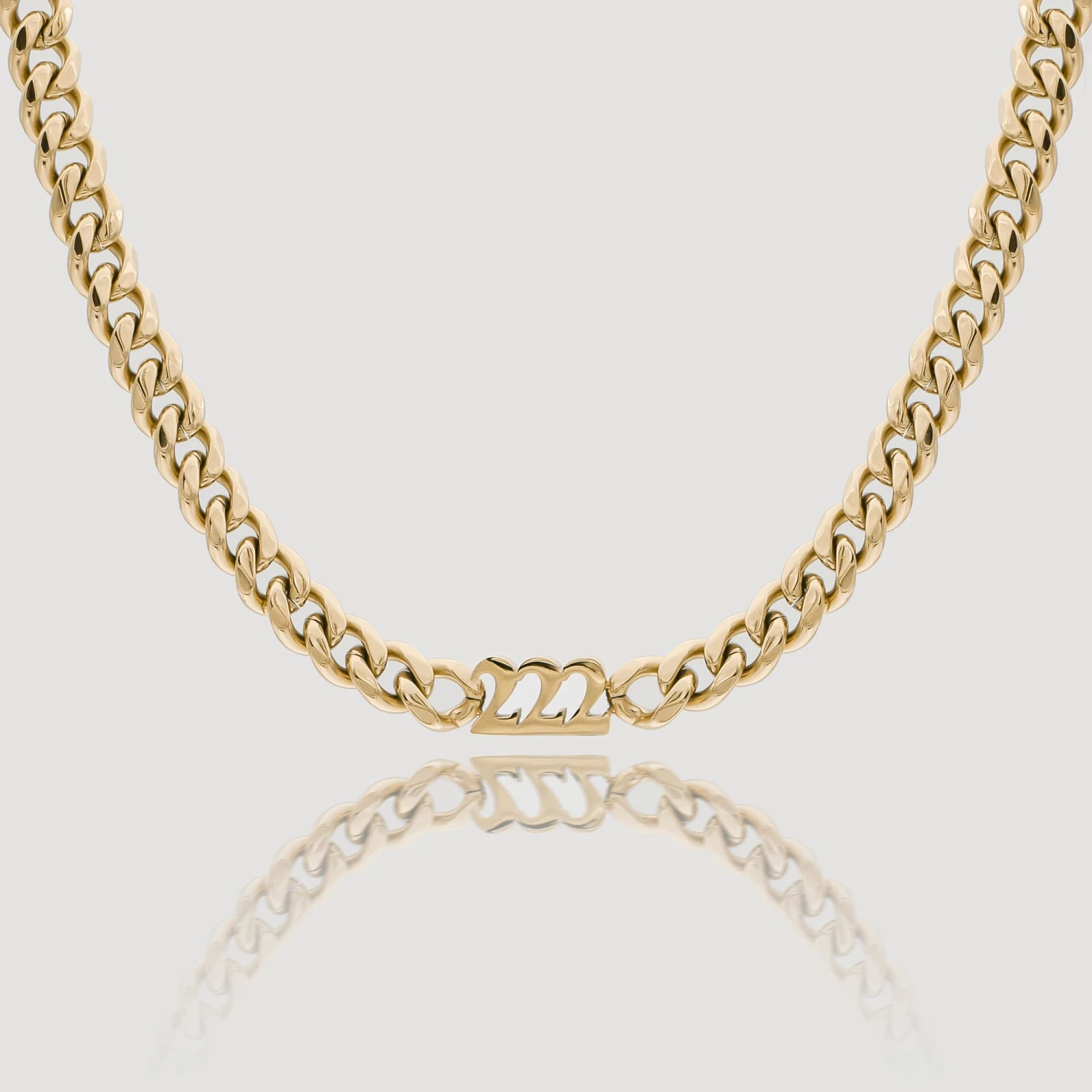 A simply stunning statement piece, featuring a thick cuban chain and a symbolic angel number of your choice. Our angel choker makes the perfect gift for you or someone special.