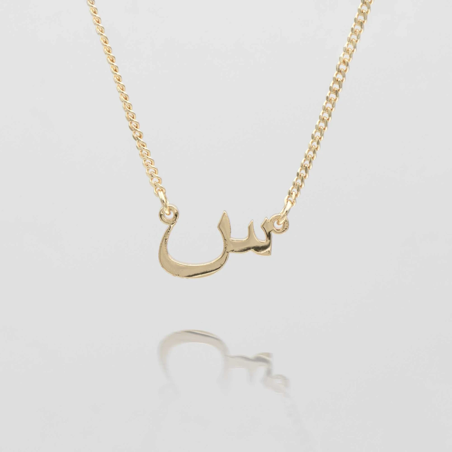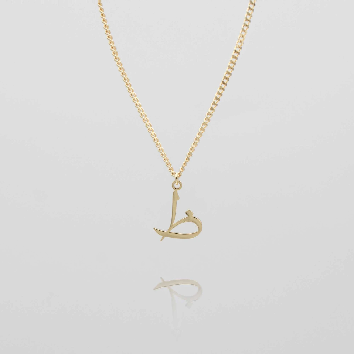 Introducing our Custom Arabic Initial Pendant Necklace, a timeless, personalised piece designed to elevate any outfit. Available in gold or silver, it features a beautifully crafted Arabic initial of your choice, adding a unique touch to your style. Perfect as a gift or a meaningful addition to your jewellery collection.