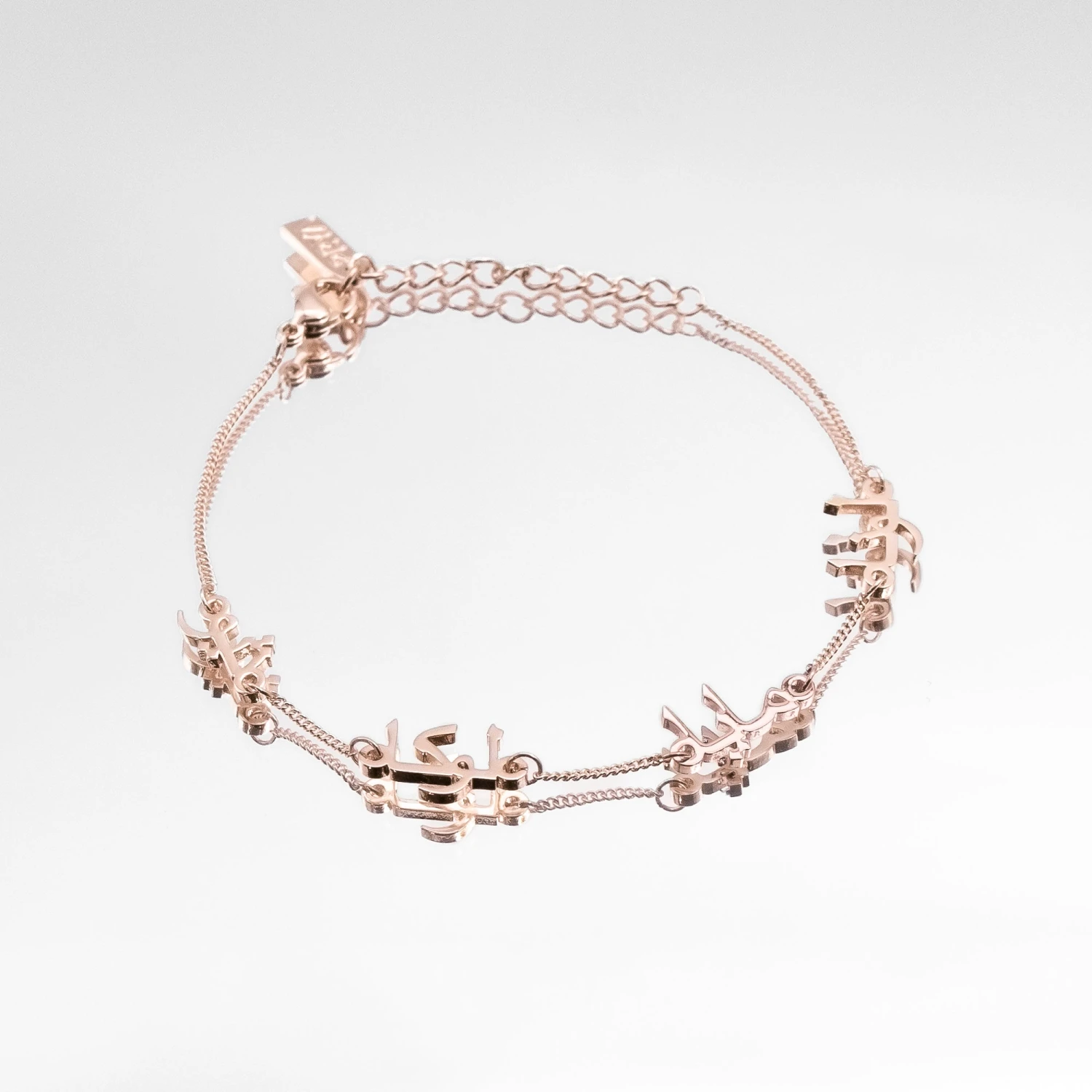 Elevate your style and celebrate your loved ones with our exquisite Arabic Multiple Name Bracelet. This stunning piece is intricately crafted with up to four custom names in elegant Arabic script. Wear it alone or pair it with our matching Arabic Multiple Name Necklace for a beautifully coordinated look.