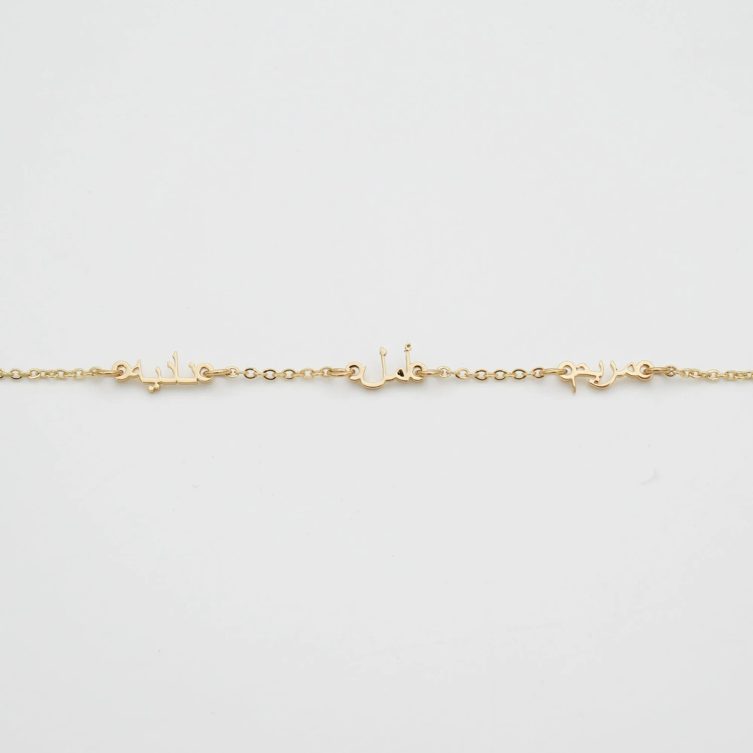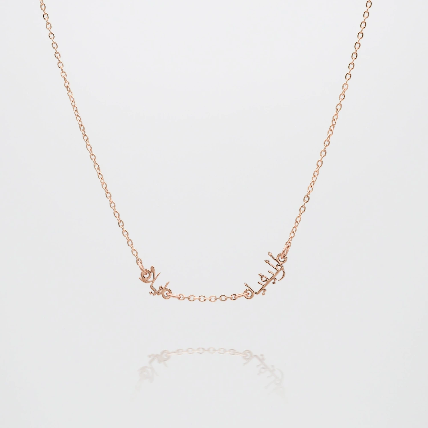 Choose from 18K gold-plated, rose gold plated, or silver plated stainless steel for a durable, long-lasting finish. If you’re unsure of the translation, simply enter names in English, and we’ll expertly craft them in stunning Arabic script. For a matching moment, pair it with our Arabic Multiple Name Bracelet. Visit our Arabic Collection for more beautiful custom made pieces.