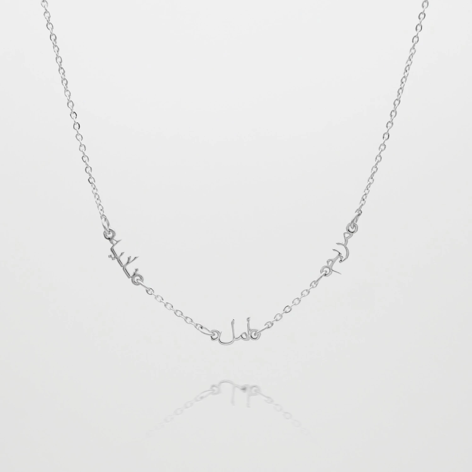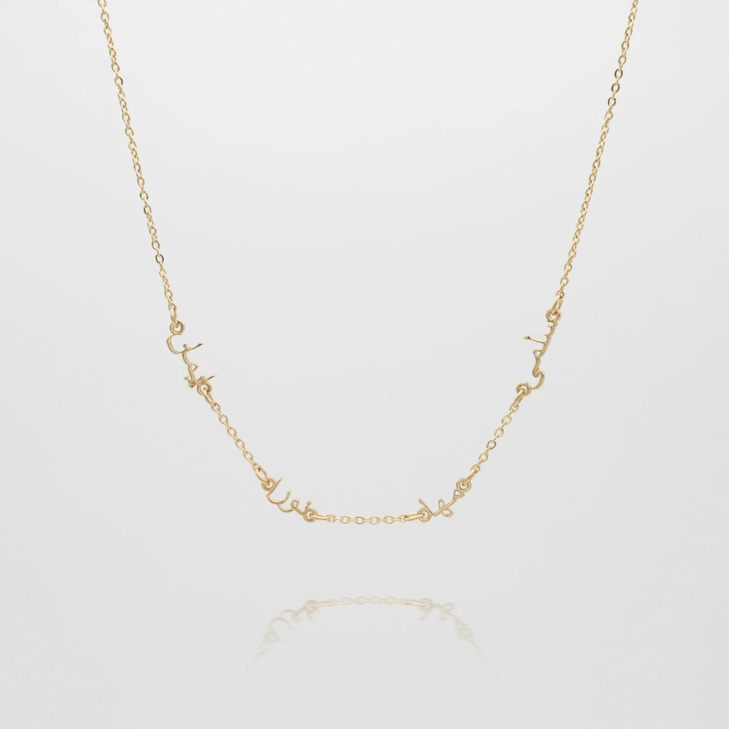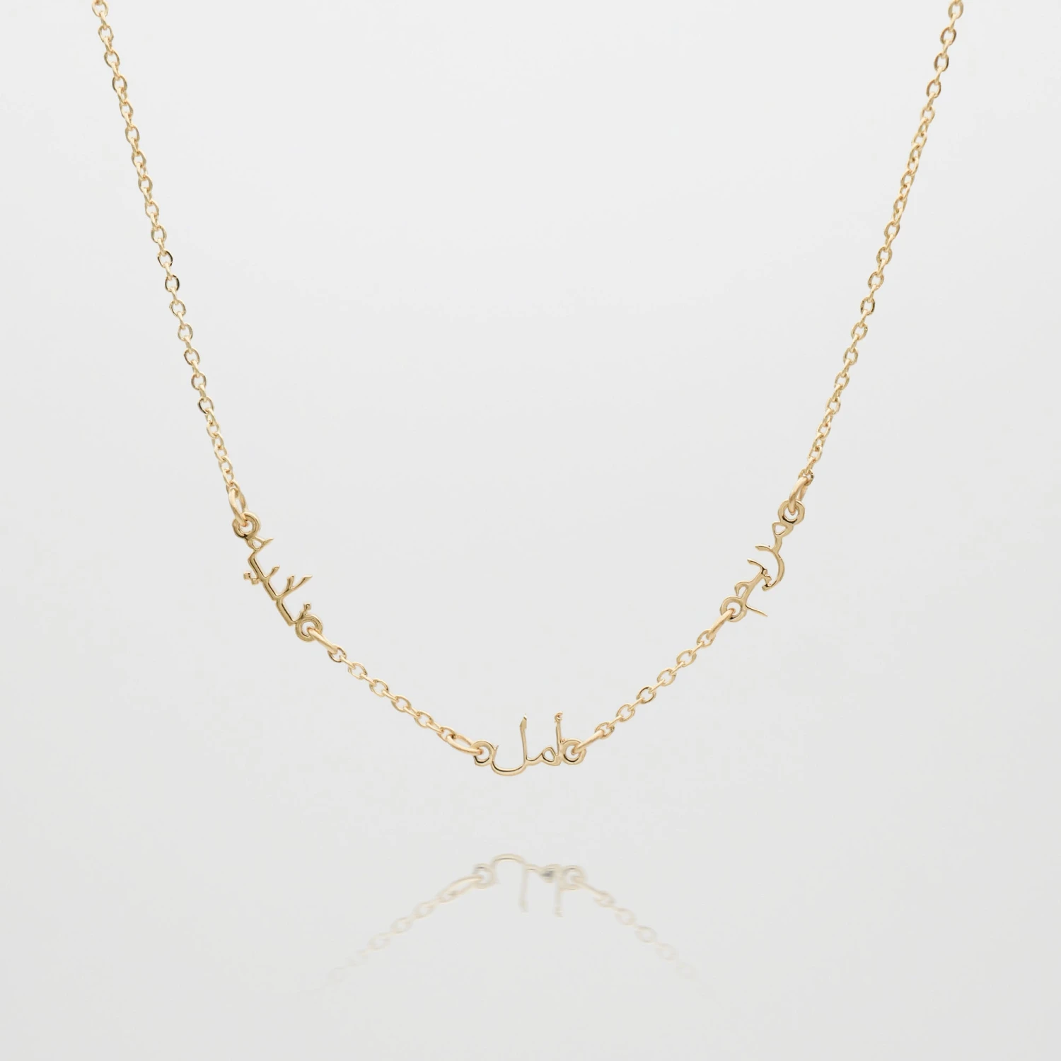 Introducing our exclusive Arabic Multiple Name Necklace, the perfect accessory to elevate any outfit. Embrace and cherish the names of your loved ones and personalise your custom name necklace with up to four names, beautifully crafted in elegant Arabic script. Whether celebrating family, friendship, or self-expression, this necklace is a timeless keepsake made just for you.