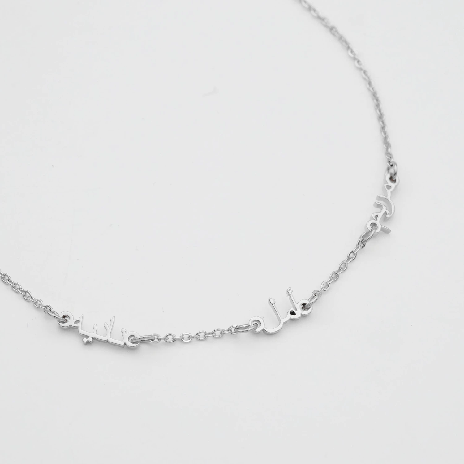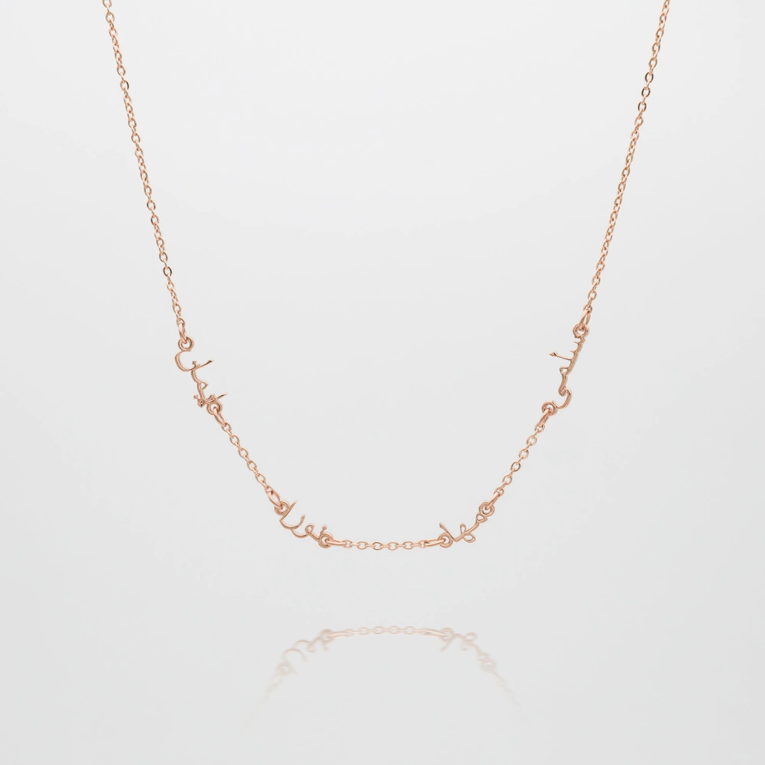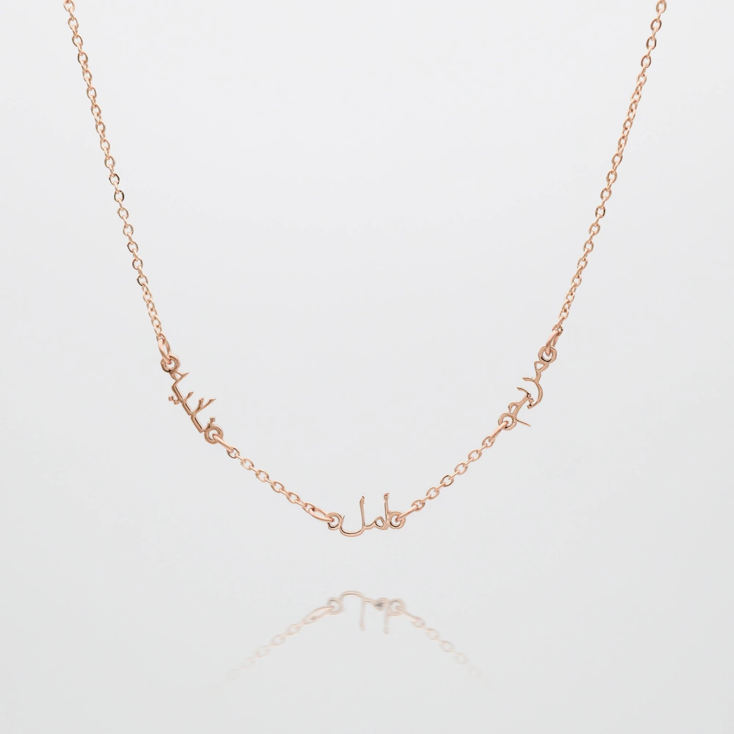 Introducing our exclusive Arabic Multiple Name Necklace, the perfect accessory to elevate any outfit. Embrace and cherish the names of your loved ones and personalise your custom name necklace with up to four names, beautifully crafted in elegant Arabic script. Whether celebrating family, friendship, or self-expression, this necklace is a timeless keepsake made just for you.