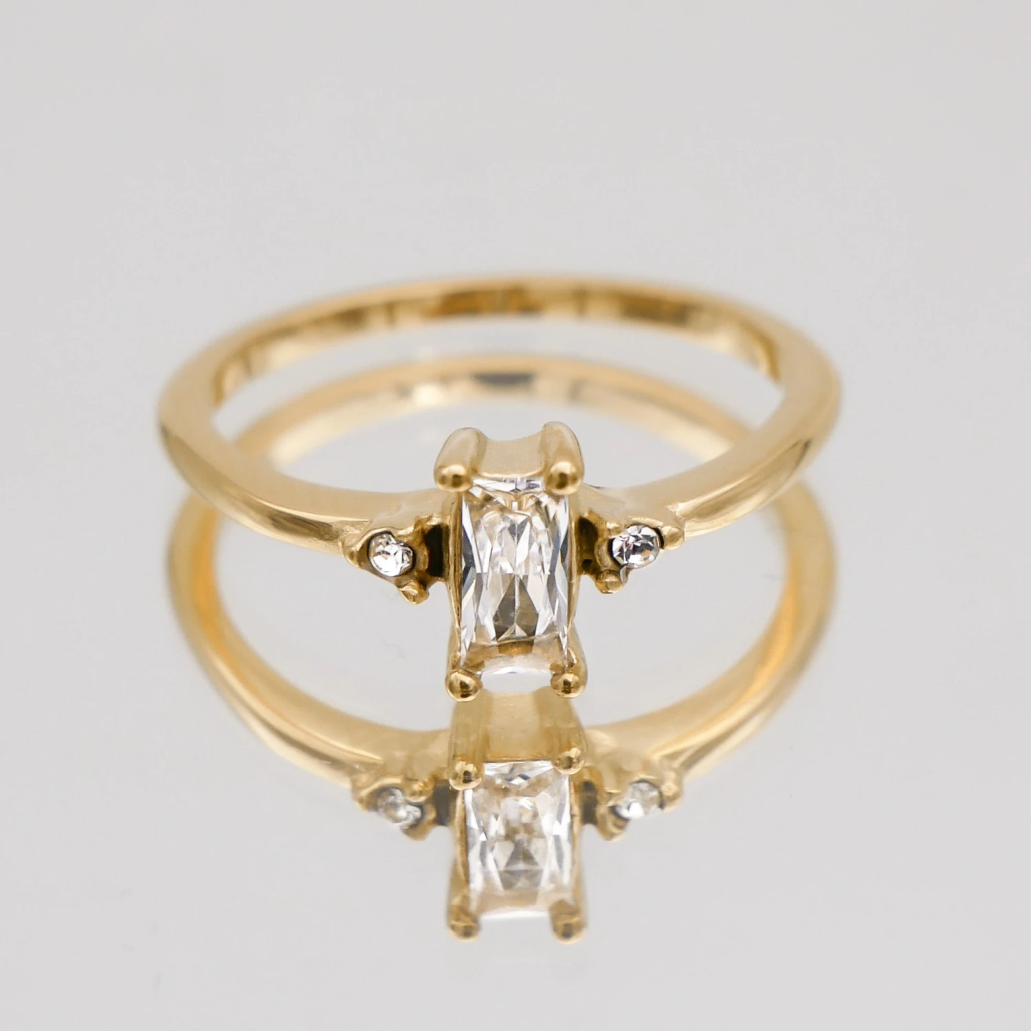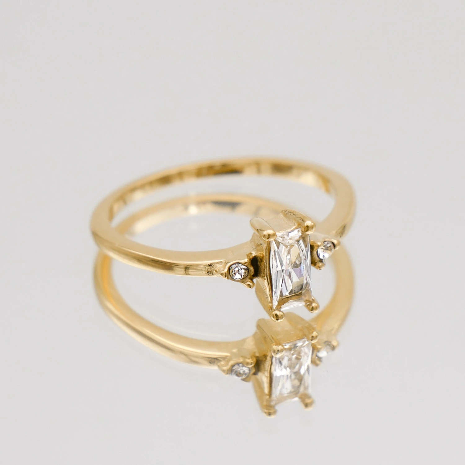 Featuring a stunning cubic zirconia stone set as the main feature, our elegant Ariel Diamond Ring ring is designed to catch the eye and capture the heart. The high-quality cubic zirconia stone is carefully selected to deliver the perfect combination of brilliance and clarity, creating a captivating sparkle. The minimalist design of the ring ensures that the main stone remains the star of the show, making it a versatile ring that complements any outfit. The ring is crafted with precision and care, using only the finest materials to ensure durability and longevity. Whether you wear it as a statement piece, or a daily accessory, this cubic zirconia ring is sure to delight and impress. Treat yourself or a loved one to this exquisite ring, and experience the beauty and brilliance of cubic zirconia in all its glory.