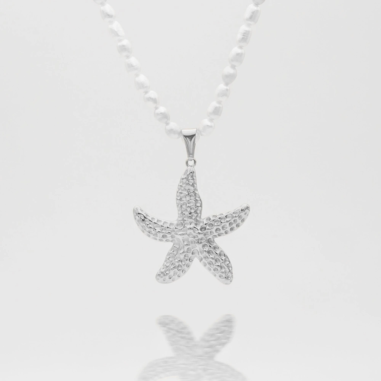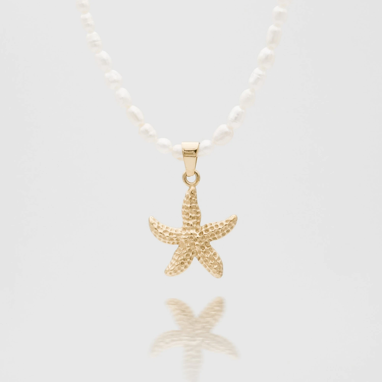 Inspired by the beauty of the Ocean, our Ariel Starfish Pearl Necklace features a stunning Gold Starfish Pendant with intricate textured detail, accented by a lustrous Freshwater Pearl. Whether you’re looking for a Statement necklace or a Dainty/ Mini one, our unique combination of Gold or Silver and shimmering Pearls make this luxurious necklace a must have for any Jewellery collection.