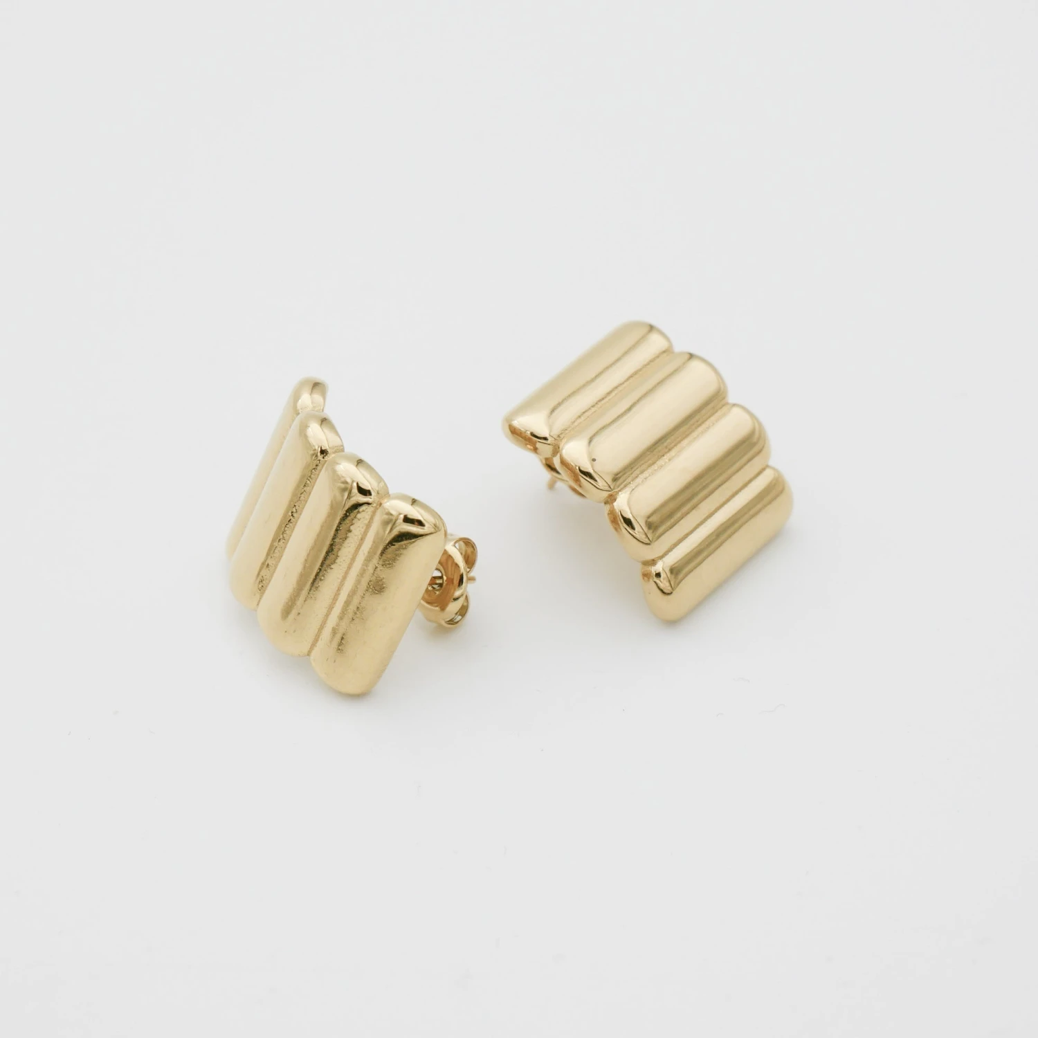 Introducing our elegant Ayra Earrings, a luxurious addition to your jewellery box. Crafted with 18k gold plating, these ribbed drop earrings exude sophistication and style. Elevate any occasion with these sleek and tasteful earrings.
