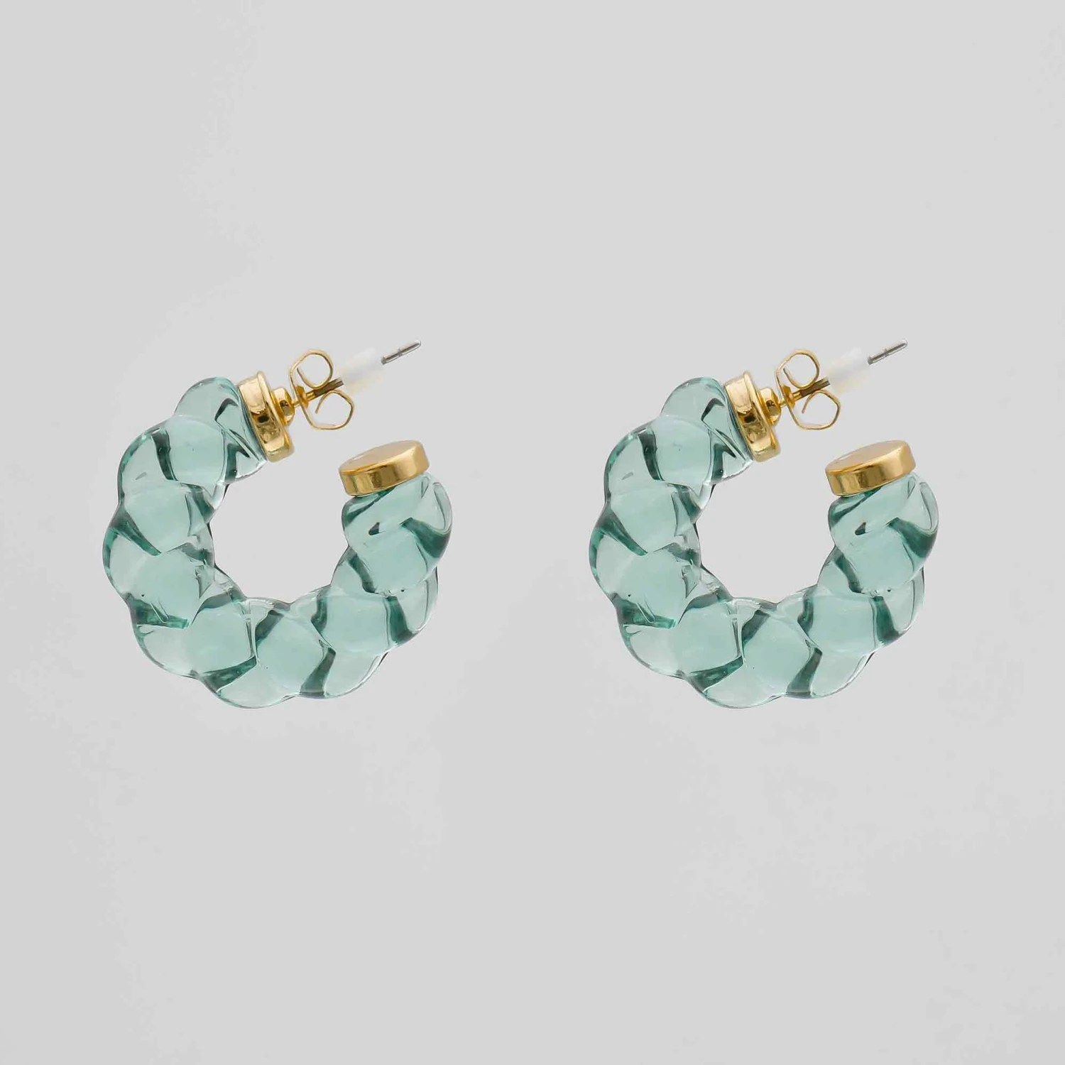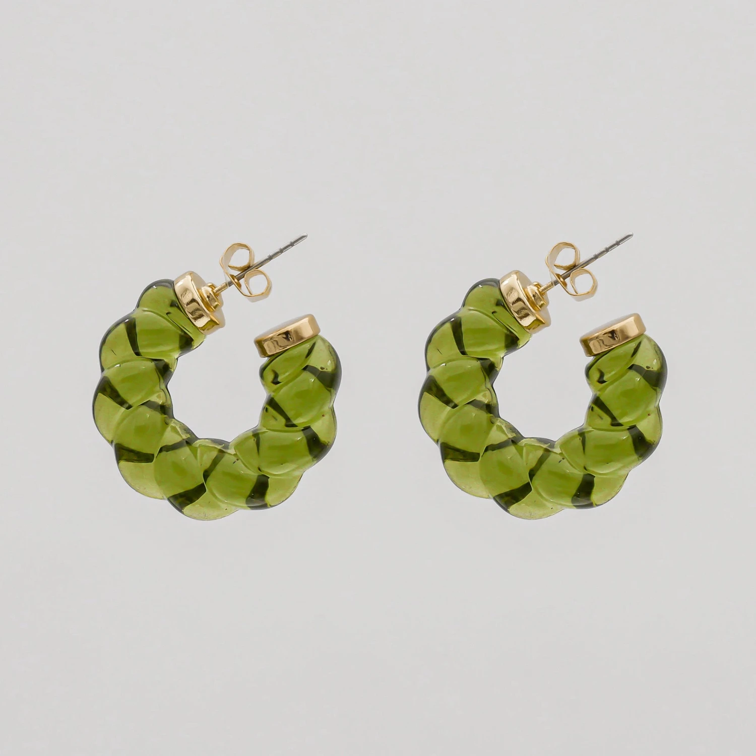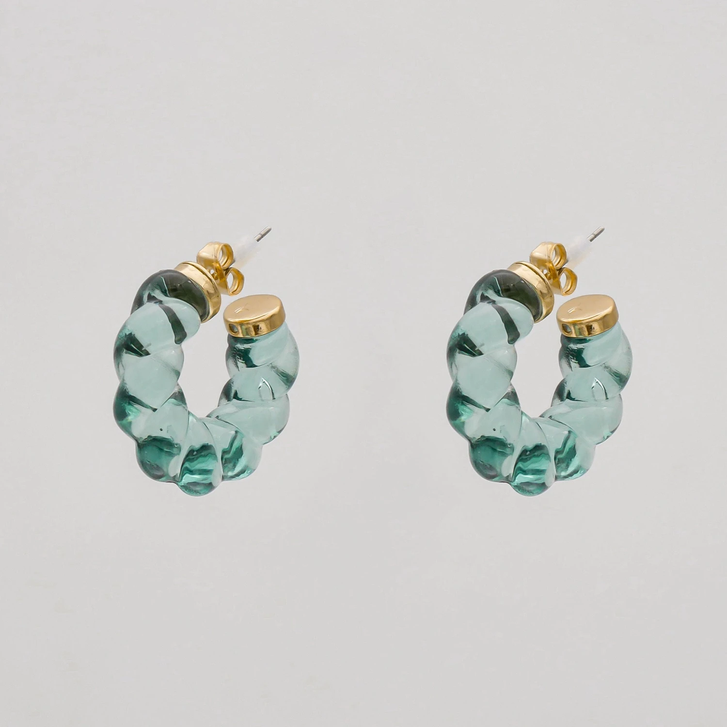 Our Candi hoop earrings puts a fun spin on the classic hoop style. Featuring a twisted jelly like design, curving around the lobe for a fun statement look. This piece is artistic, beautifully crafted and exudes elegance.