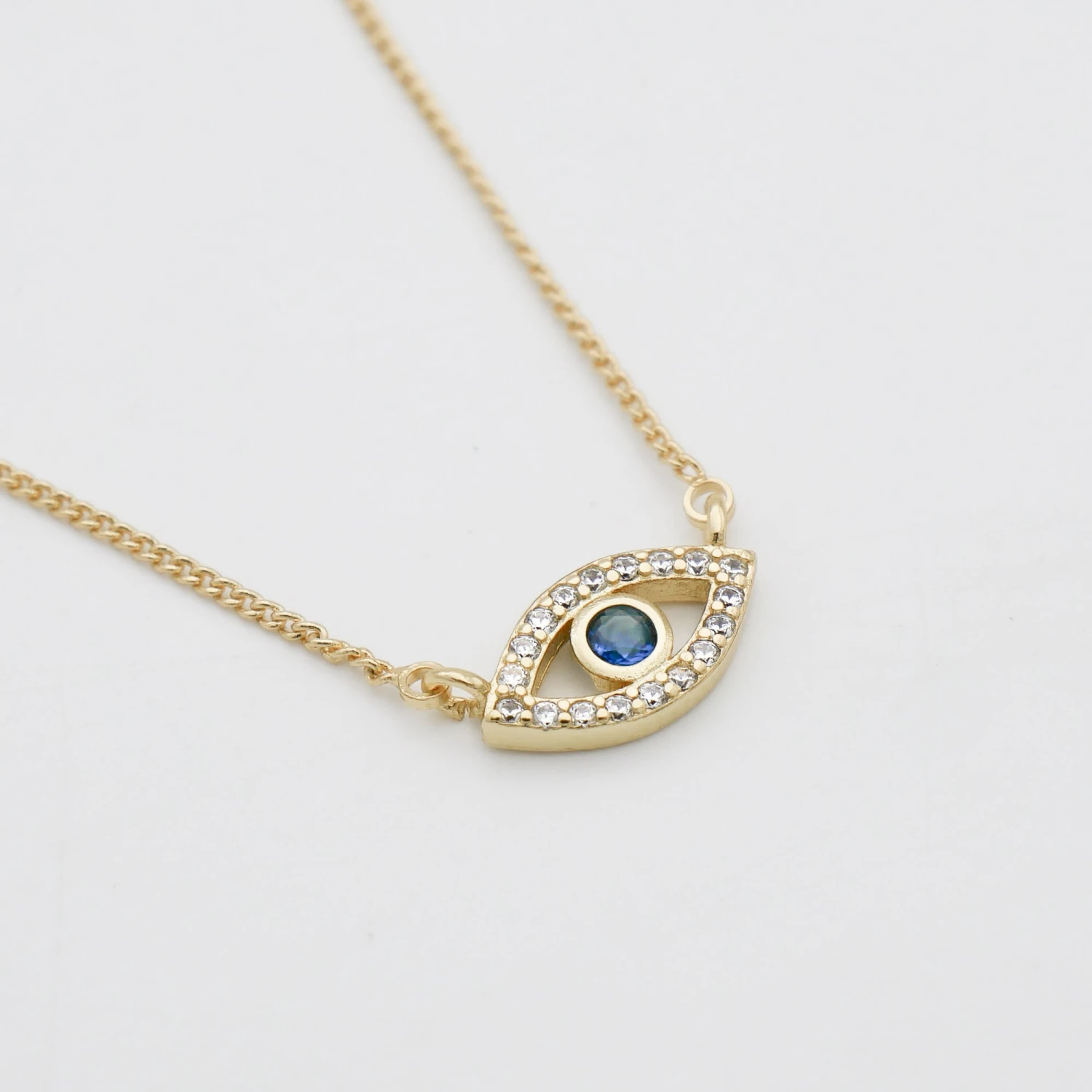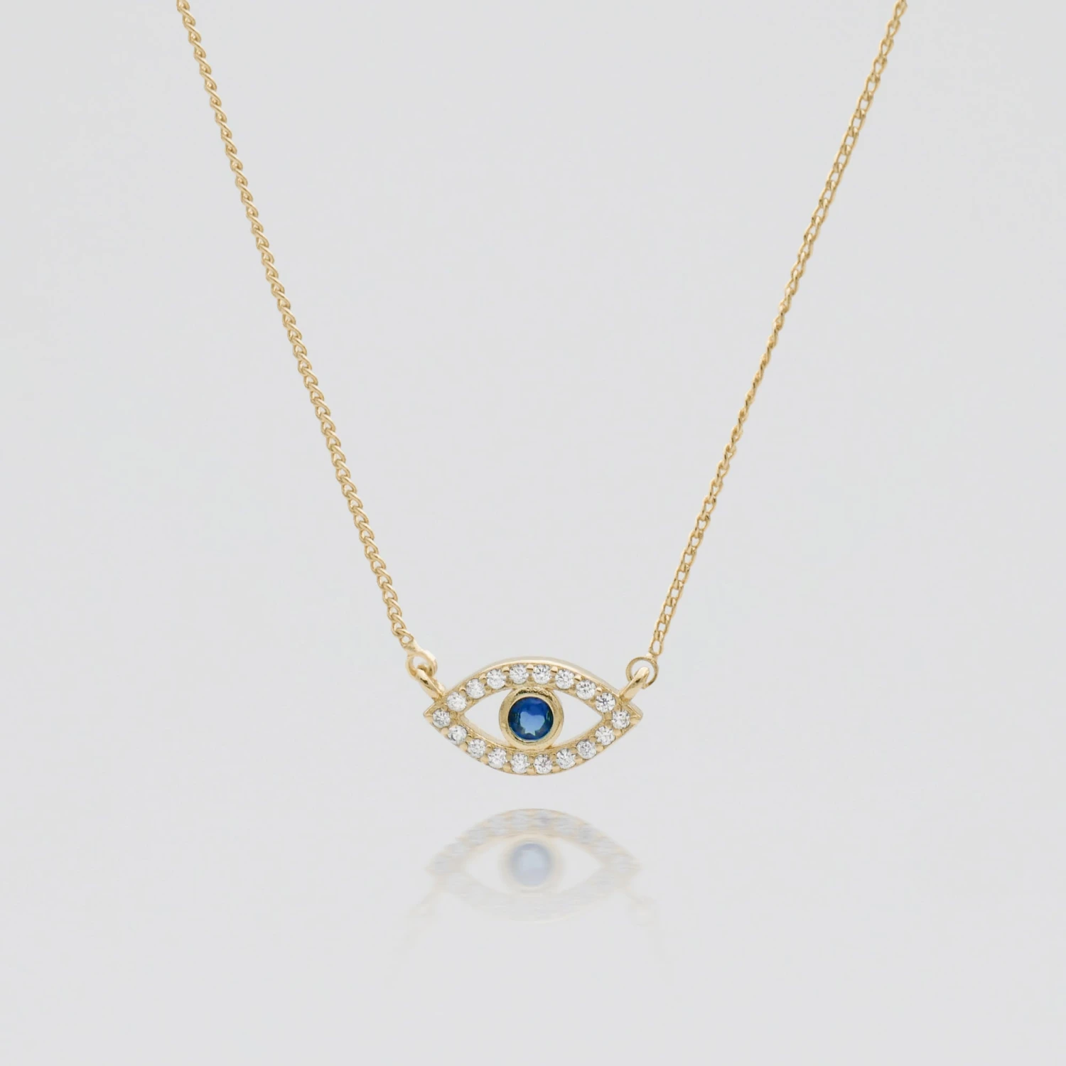 Our beautiful Cara Horus Eye Necklace features a stunning Eye Pendant paved with sparkling CZ diamonds, finished with a Deep Blue Sapphire or Emerald Green stone at its centre for a touch of added luxury. Our Evil Eye Necklace is available in Gold or Silver and is the perfect finishing touch to any outfit.