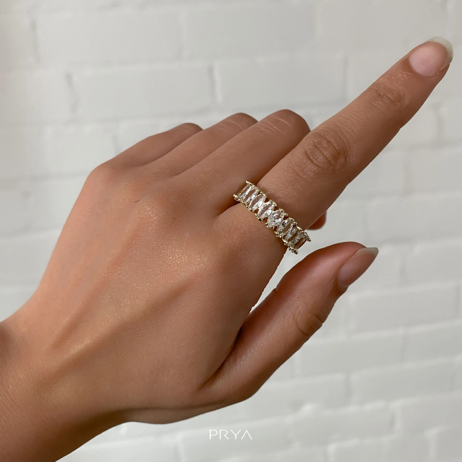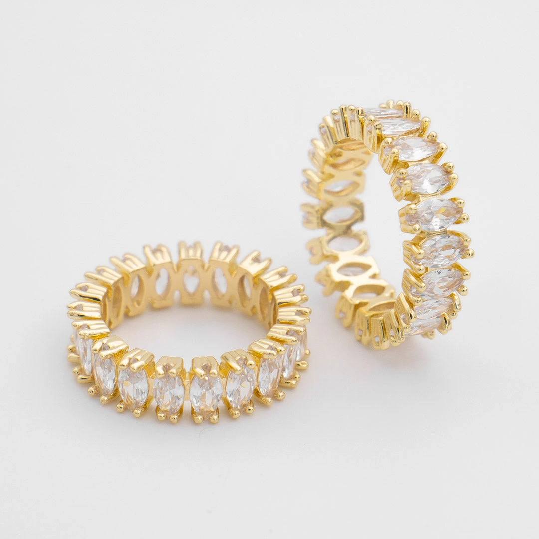 Lend a touch of sparkle to every occasion with our elegant Cassie ring. It features brilliantly-cut cubic zirconia stones, surrounded by Gold Stainless steel. Let it shine on its own, or mix and match with our other rings.
