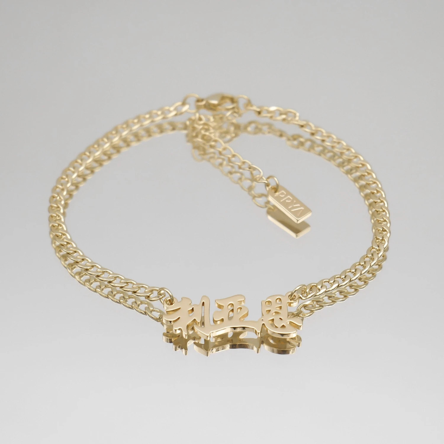 Add Some Chinese Charm to any outfit with our beautiful Chinese Script Custom Name Anklet. 18K Gold, 14K Rose gold or Silver plated stainless steel.