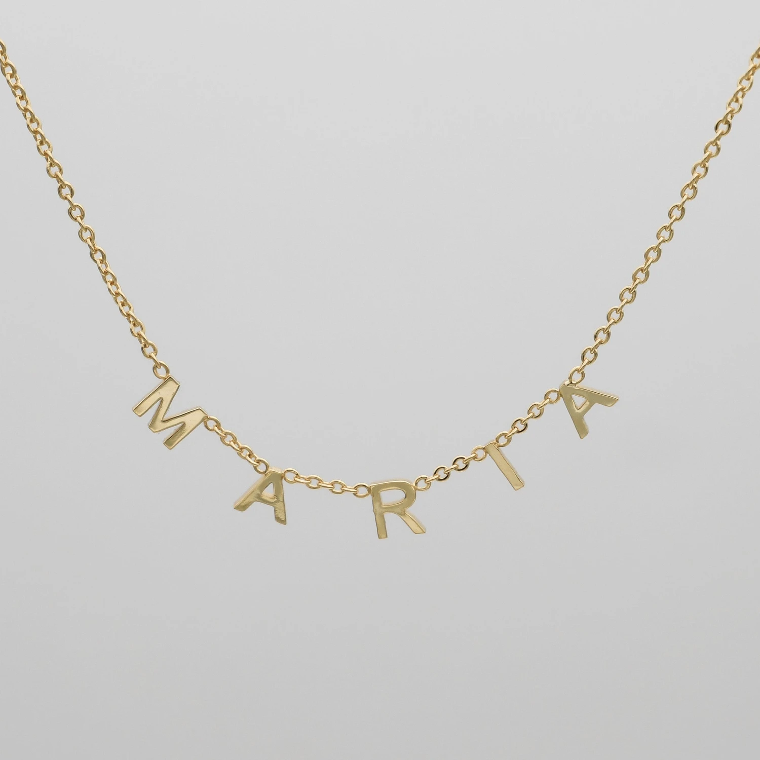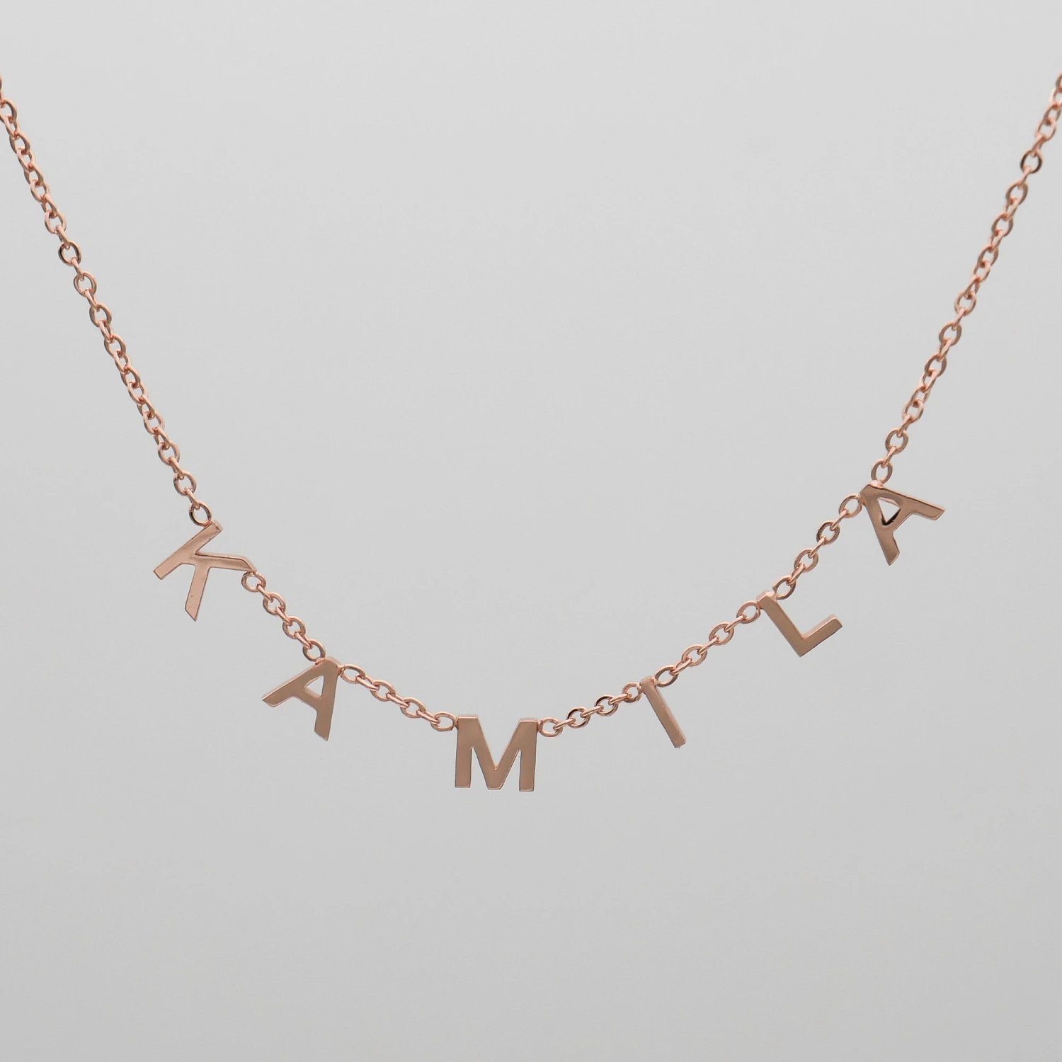 Embrace the elegance of personalised jewellery with our Classic Suspended Custom Name Necklace. Crafted in high quality metals including 18k Gold and Silver plated, this timeless piece captures the beauty of your chosen name in a delicate, suspended design. Perfect for daily wear, this custom necklace is more than an accessory; it’s a statement of individuality and connection. With durable materials and a minimalist design, this necklace complements any outfit, adding a touch of personal sophistication.
