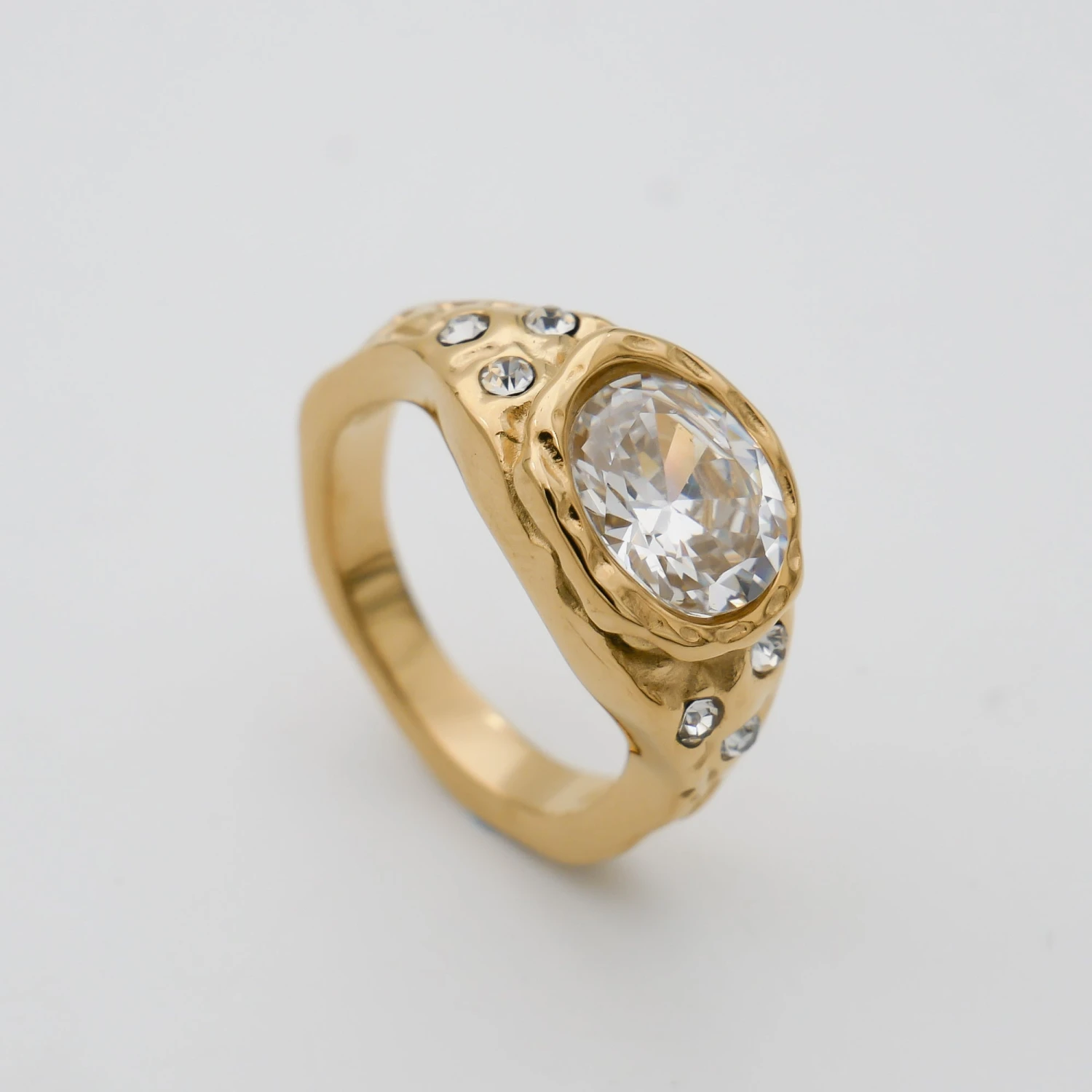 Each ring is delicately bezel set into a detailed encrusted 18k gold plated frame with our high grade imitation Cubic Zirconia for that extra durable feel. Let it shine beautifully on its own, or mix and match with our other statement rings.