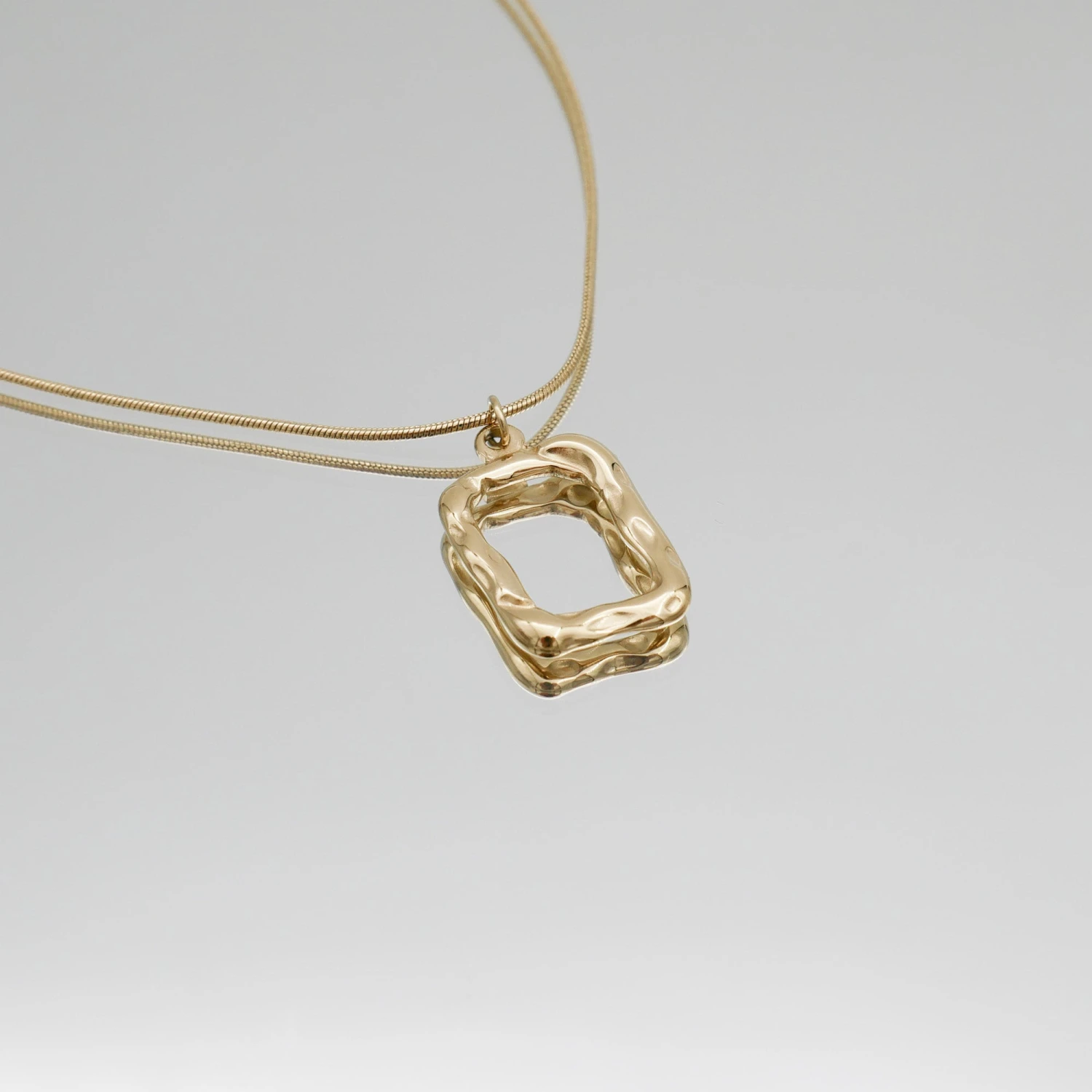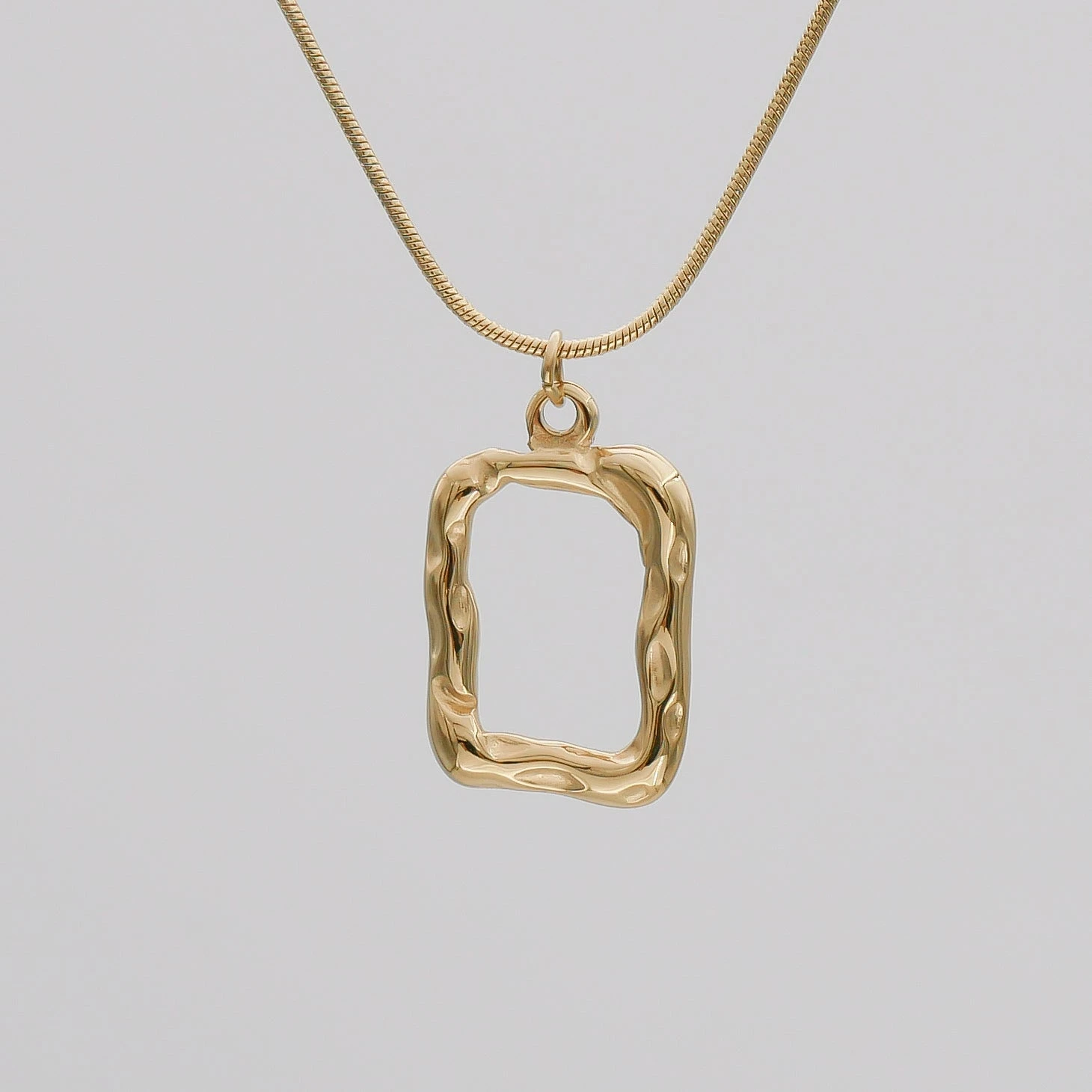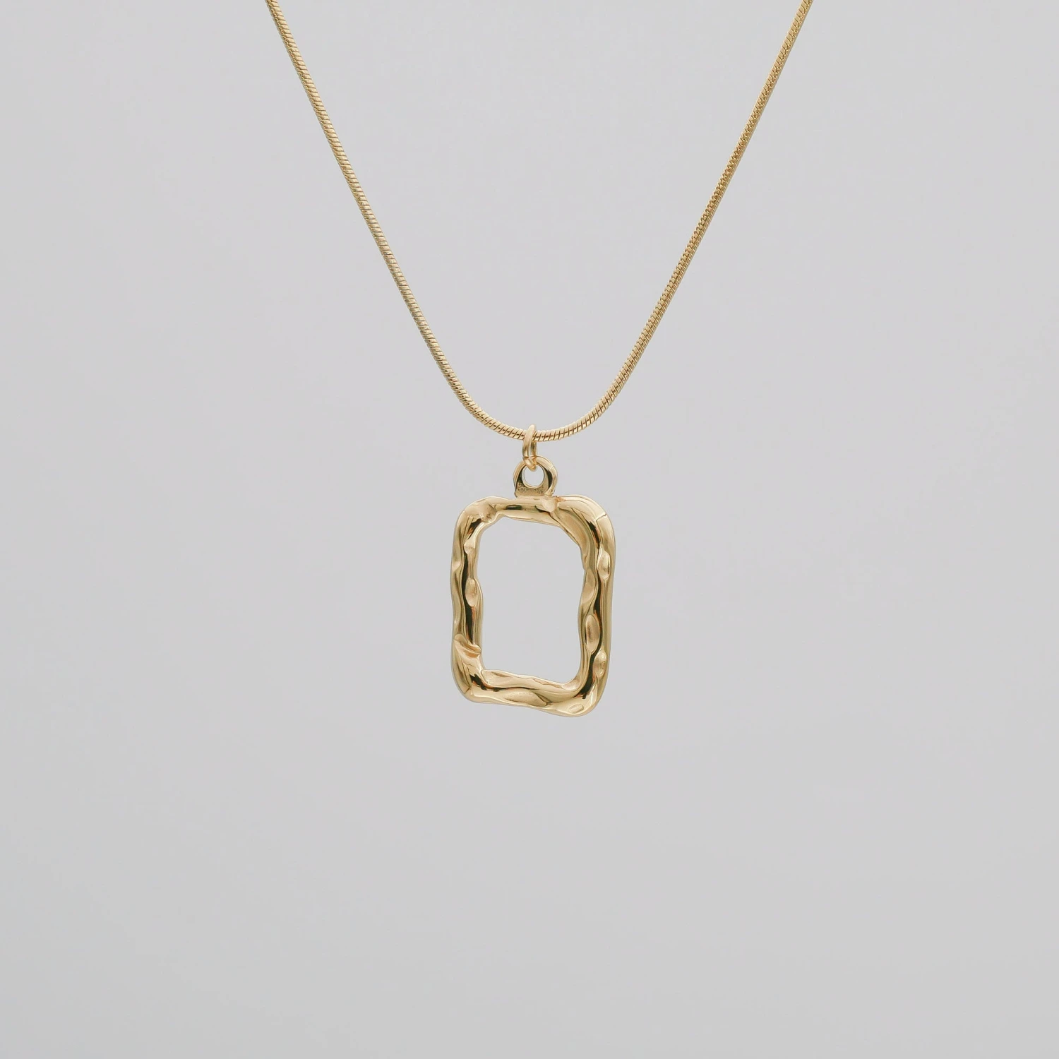 The Elise Rectangle necklace is the ultimate mix of two bestselling trends, a fine snake style chain and a beautifully detailed rectangle pendant. Worn alone or layered with other pieces, this piece will no doubt impress.