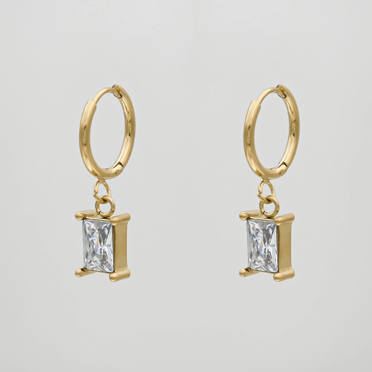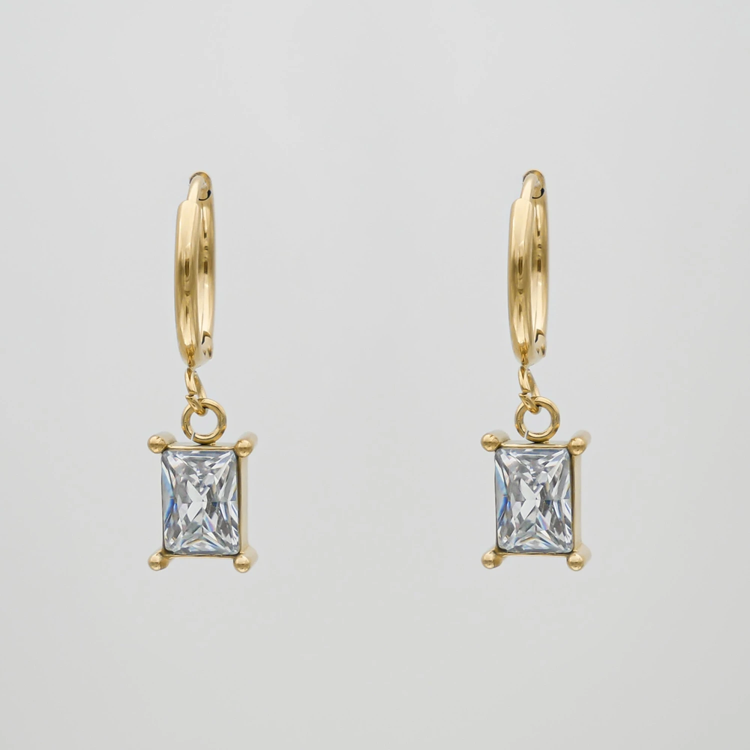 Elevate your ear collection to new heights. Vintage-inspired, sleek and subtle, the Erin earrings are designed to hug your earlobe. Designed with a cubic zirconia gem suspended from a delicate hoop. Match with our Erin Pendant Necklace.
