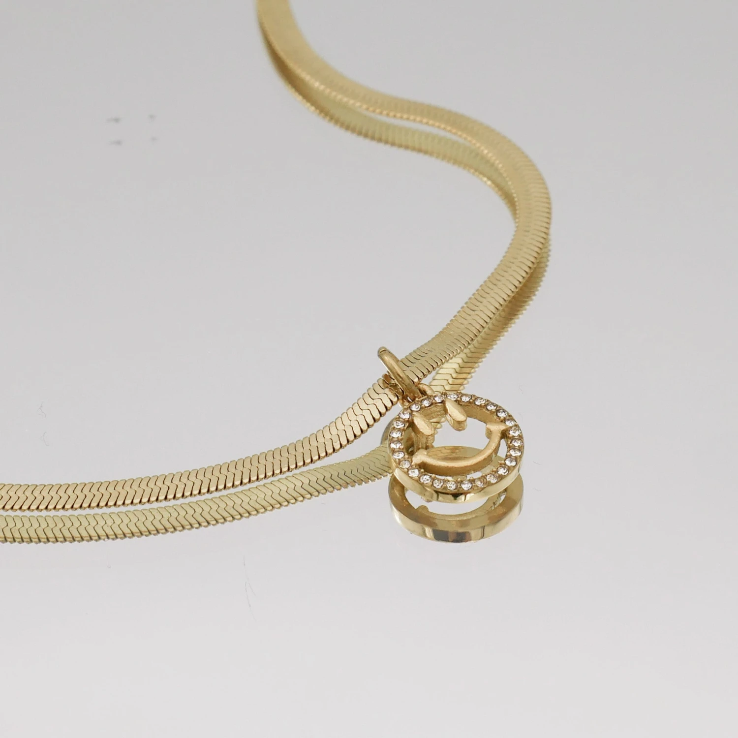 Brighten up your day and elevate your outfit with our fun Farrah Smiley necklace. Suspended on a gorgeous herringbone chain. Our Farrah necklace will complement a range of outfits and styles, this is ready for you to wear today!