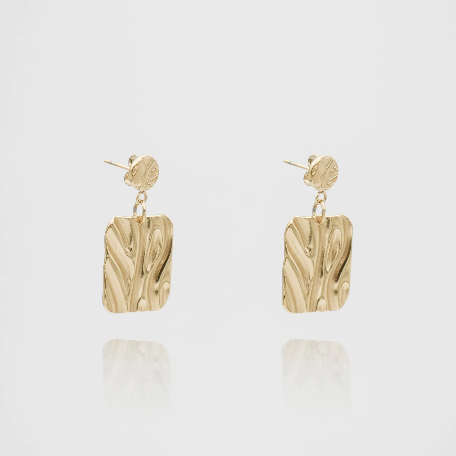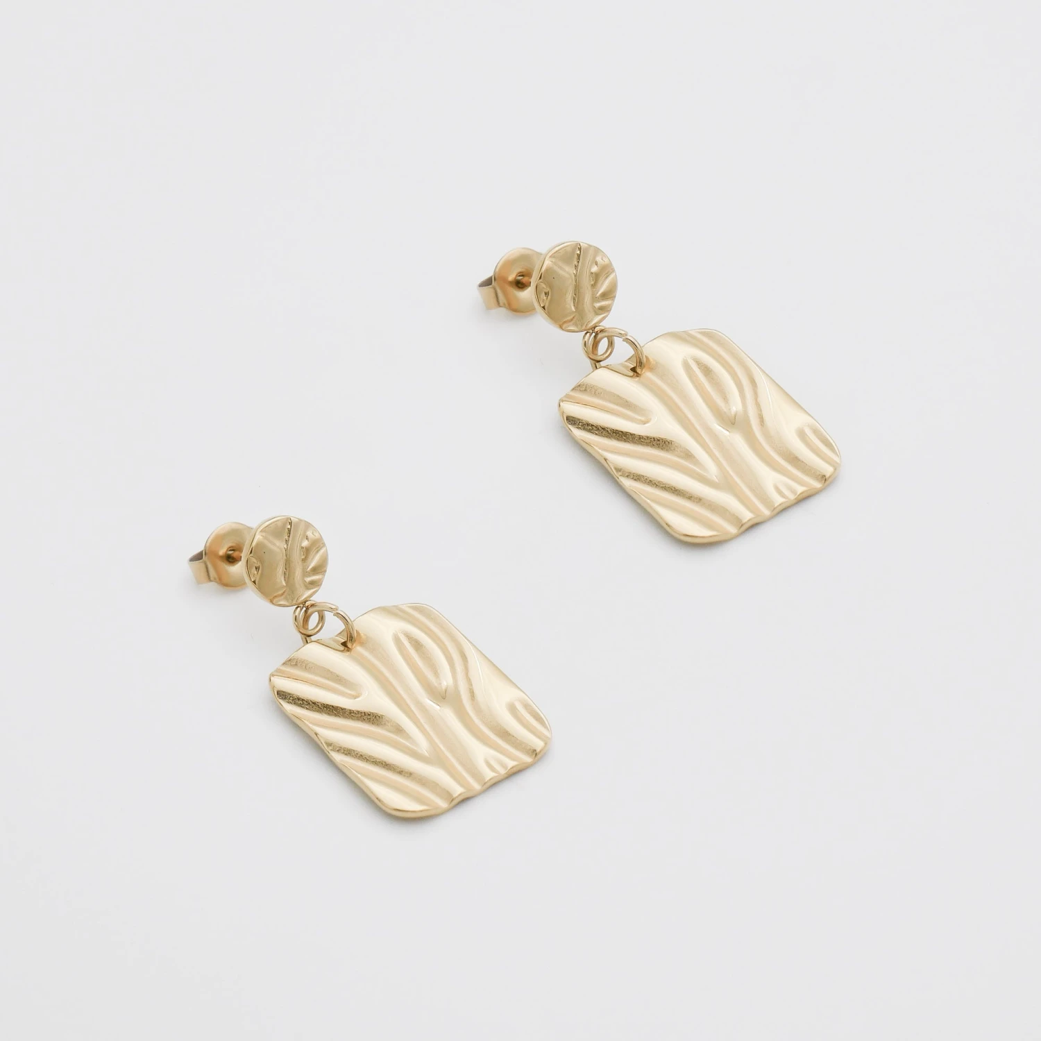 Make a statement in the Gianna Earrings. These textured earrings feature a gorgeous tablet-shaped drop design that will elevate any outfit. The subtle texture adds an intriguing detail that will captivate attention, making these stunning earrings the most sophisticated addition to your earring collection.