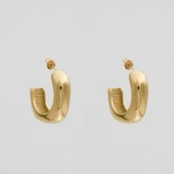 The Gizelle Gold Earrings features a stud with a drop earring element that are designed to make a statement with their molten loop texture. Crafted from polished 18k gold plating, these striking earrings offer a luxurious finish that instantly elevates any look. Their unique design ensures they stand out, making them the perfect accessory for both everyday wear and special occasions.