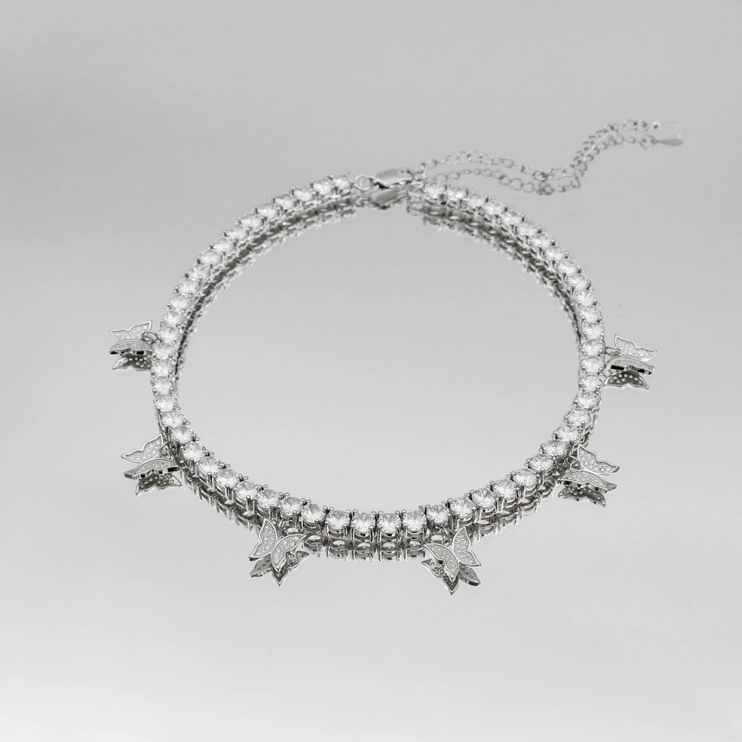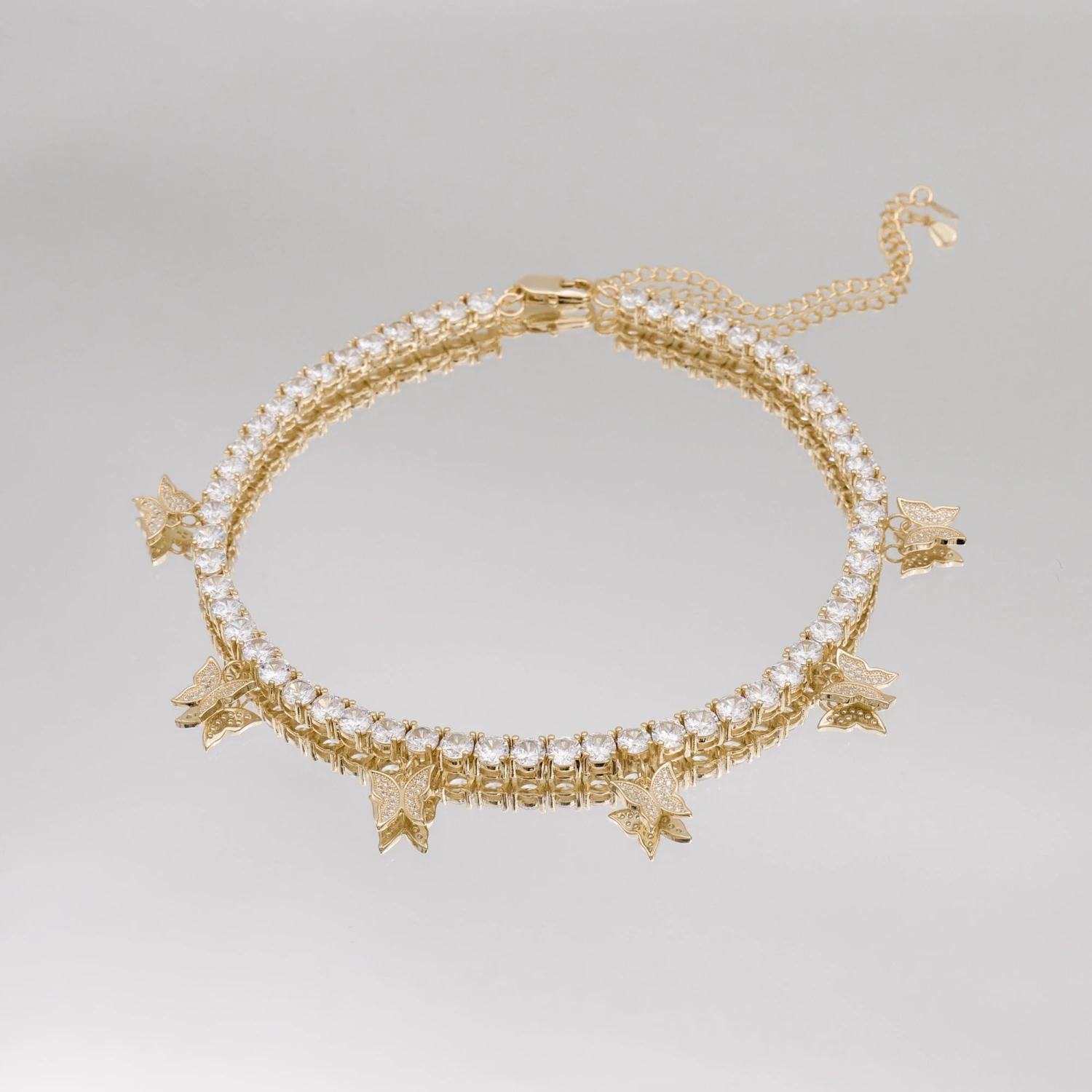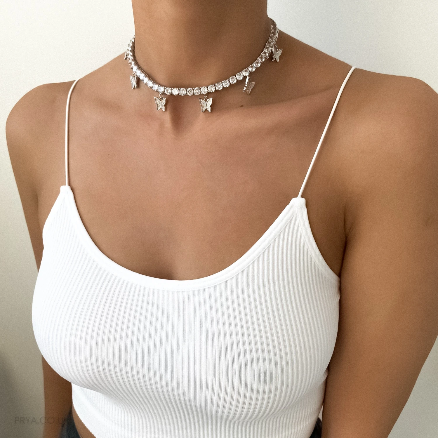 Our Butterfly CZ Choker is a beautiful statement piece. Crafted from 18k gold or silver filled stainless steel, it features the highest grade hand set Cubic Zirconia stones to keep it shining from all angles.