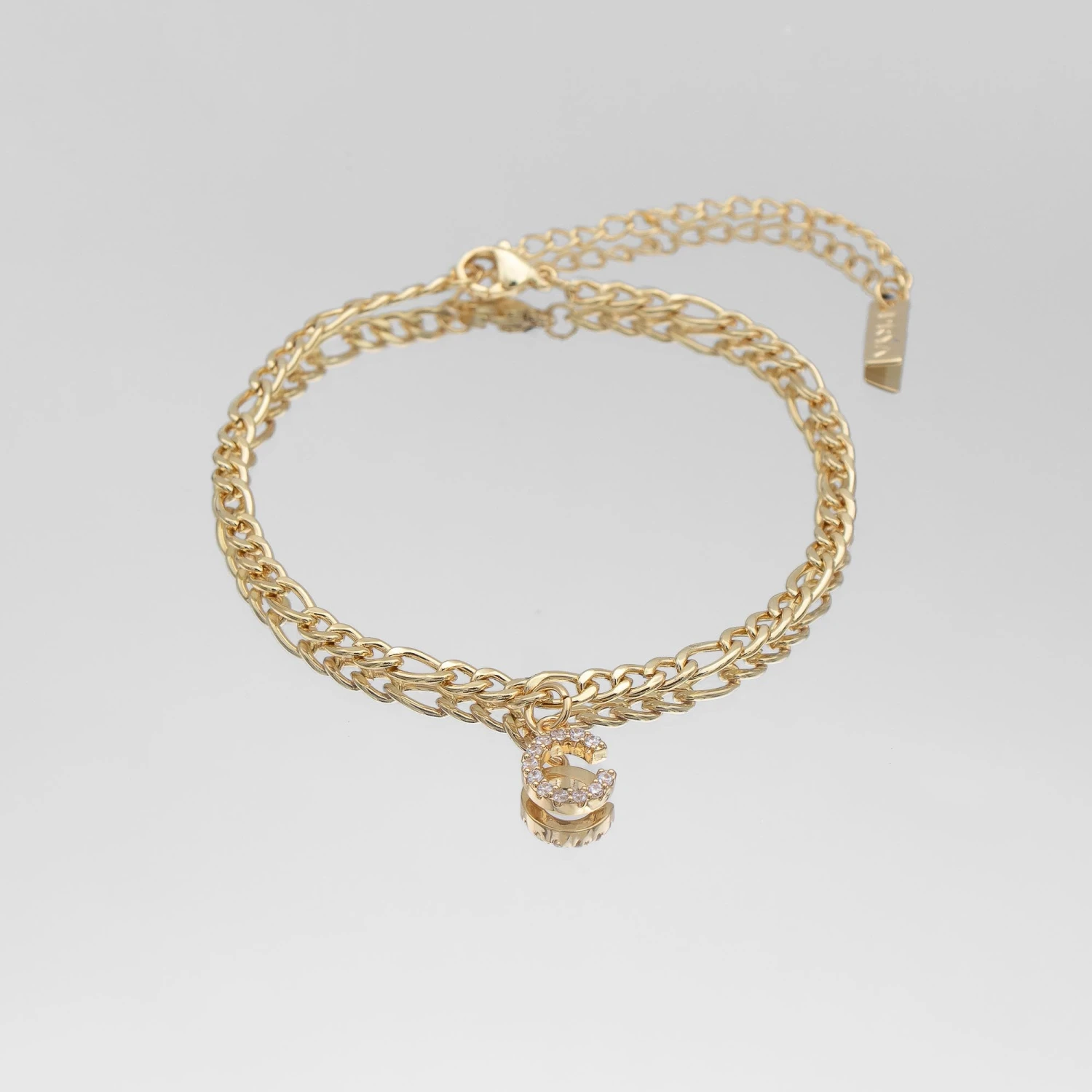 Our ICY initial anklet is an awesome addition to your style. The anklet features an initial letter in your selection, created from either an 18K gold plate or silver-plated stainless steel and bejeweled with sparkling cubic zirconia. A sparkly piece to add some shine.