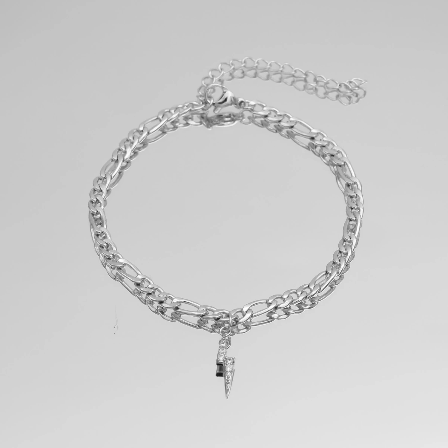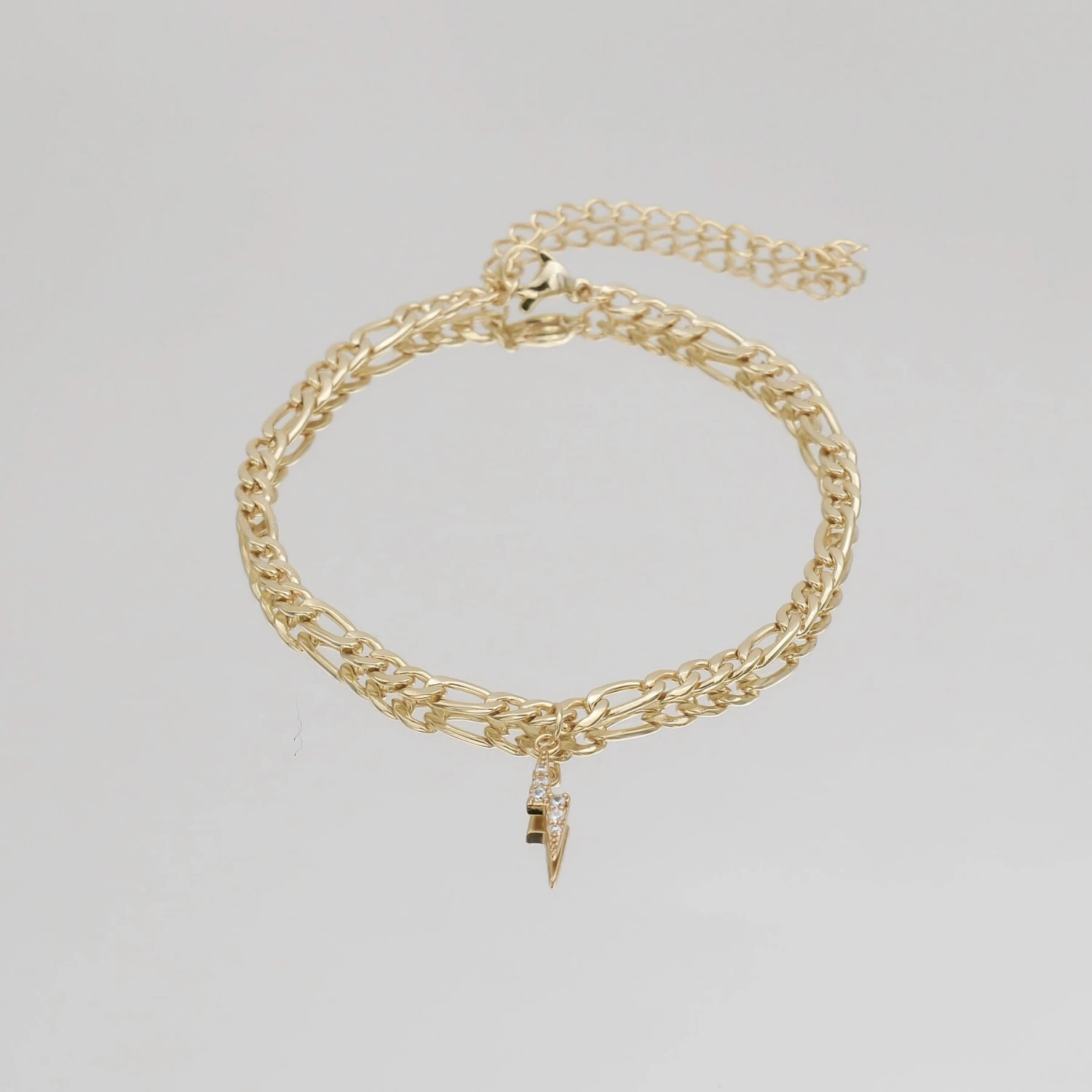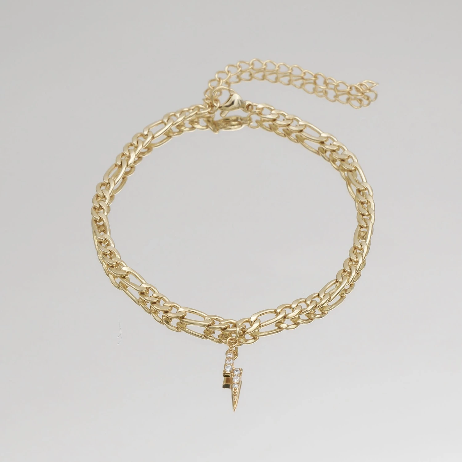 Offering a symbol of creativity, add a touch of edge with our ICY lightning bolt cuban anklet. Featuring a carefully paved CZ single suspended lightning bolt attached to a cuban link chain. Style with a curation of layered gold anklets for a subtly striking finish.