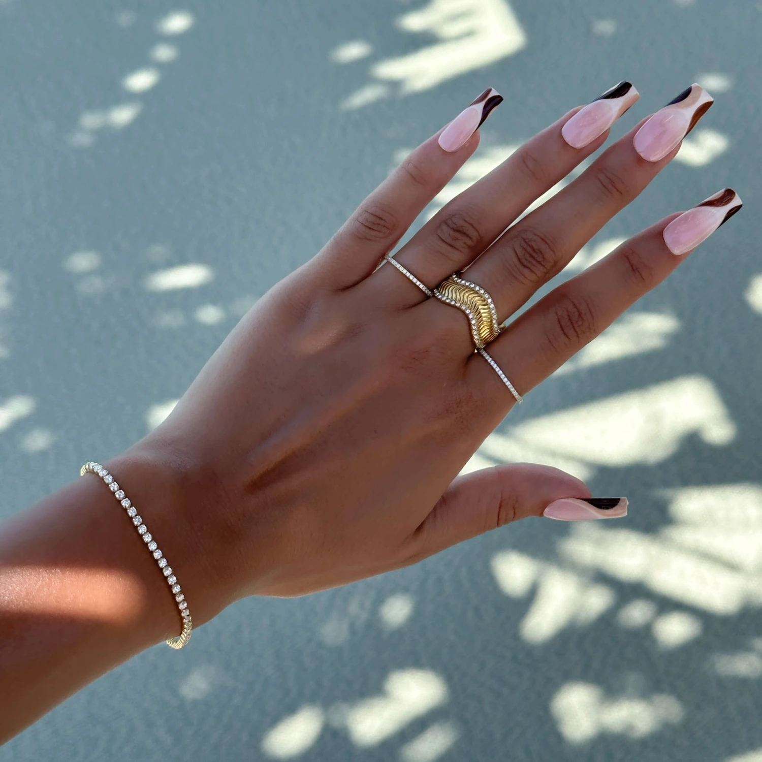 Our Icy Tennis Bracelet is a beautiful statement piece. Crafted from Gold & Silver plated stainless steel, paved with high grade hand set Cubic Zirconia stones to keep it shining from all angles. Pair it with our beautiful Icy Tennis CZ Choker.