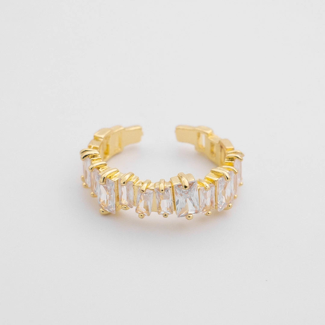 This beautiful women’s gold baguette ring adds a sparkle to any look. Let it shine on its own or stack as it makes an excellent stacking ring.