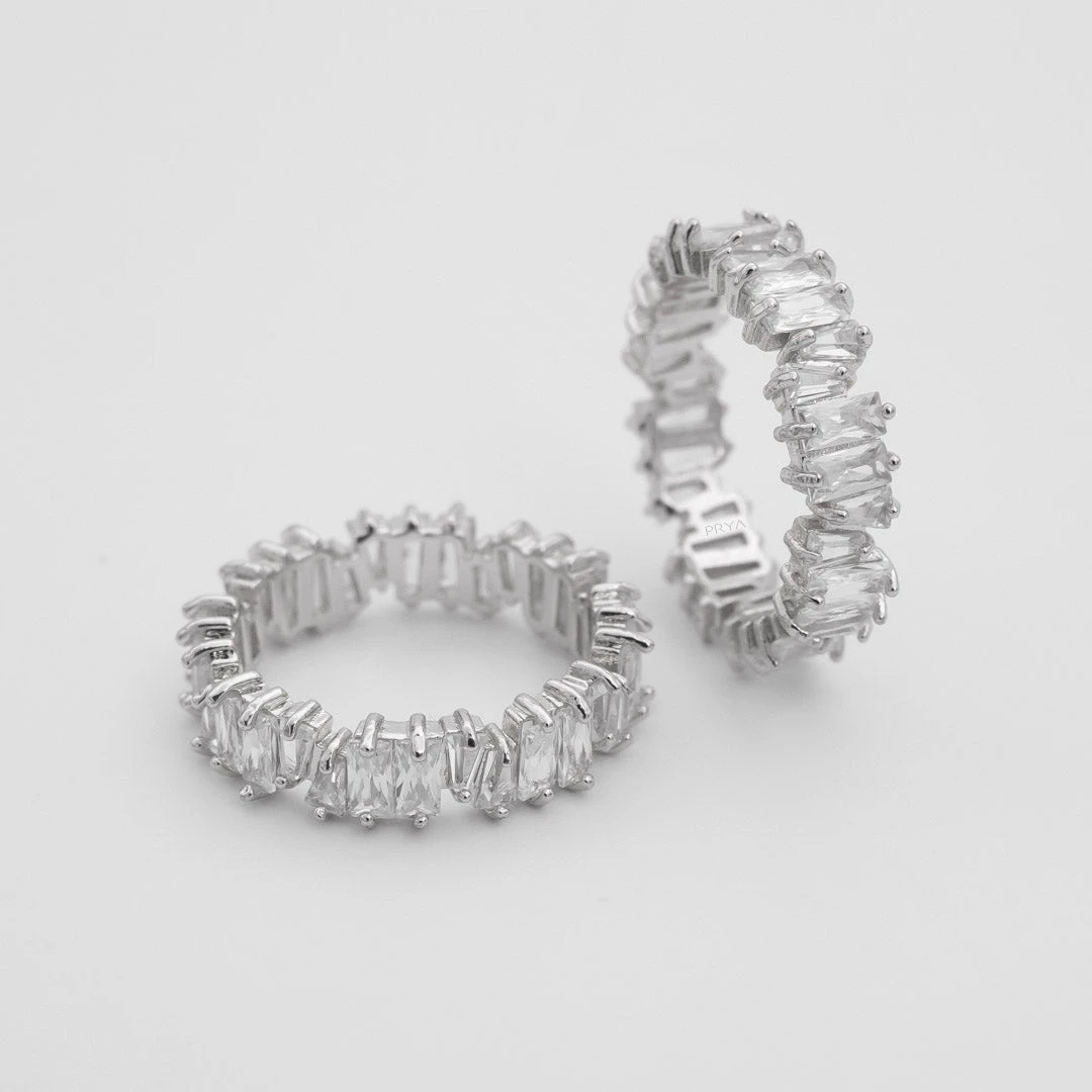 This beautiful women’s gold baguette ring adds a sparkle to any look. Let it shine on its own or stack as it makes an excellent stacking ring.