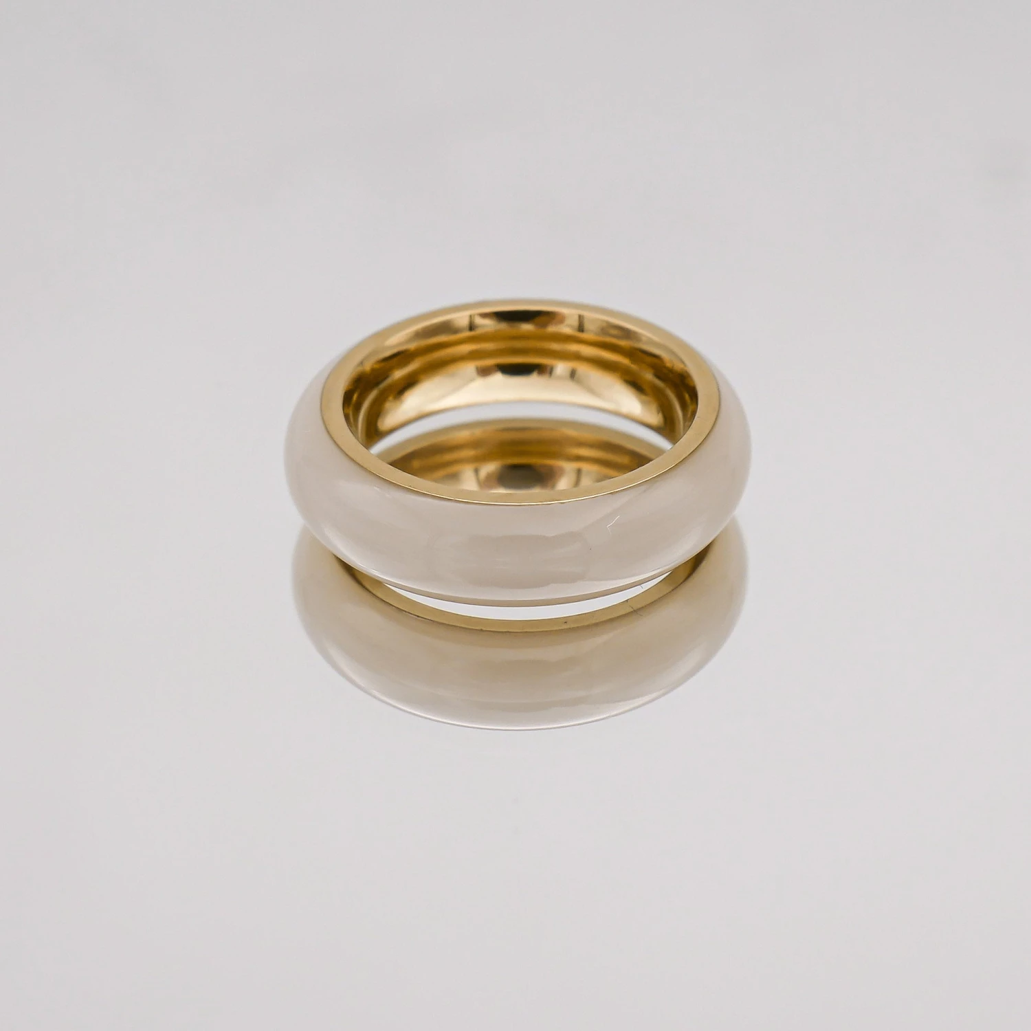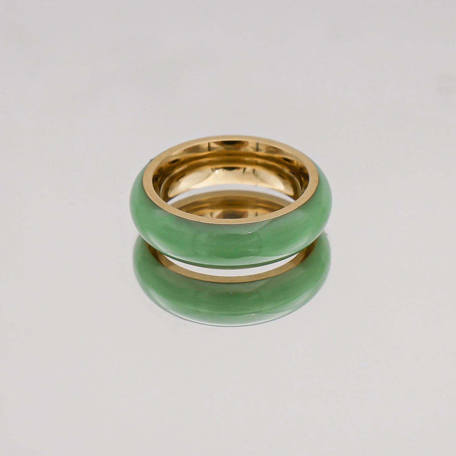 This classic band style ring features opal & Jade imitation stones with a seamless band finish, supported by gloss finished 18k gold band structure. A great casual individual ring for everyday wear, or layered with a selection of other PRYA rings.