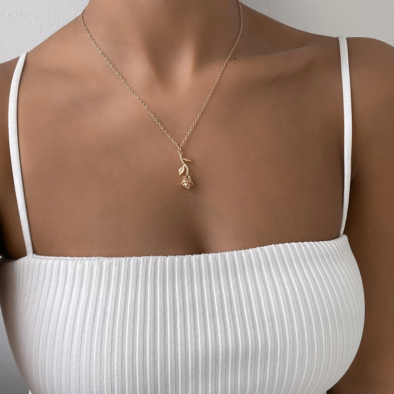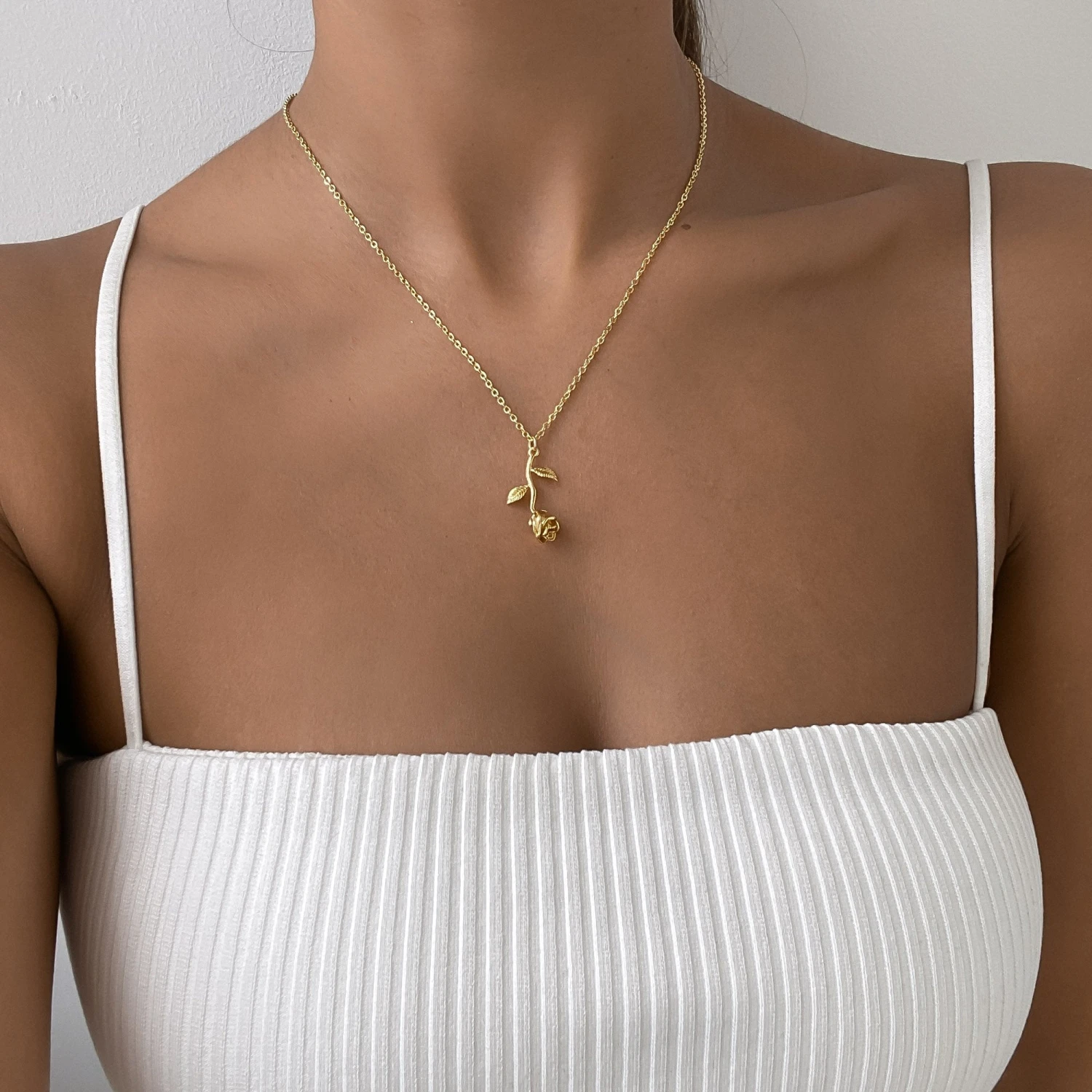 Complete any outfit with this beautiful Rose pendant necklace, crafted out of gold, Rose gold or silver plated stainless steel.