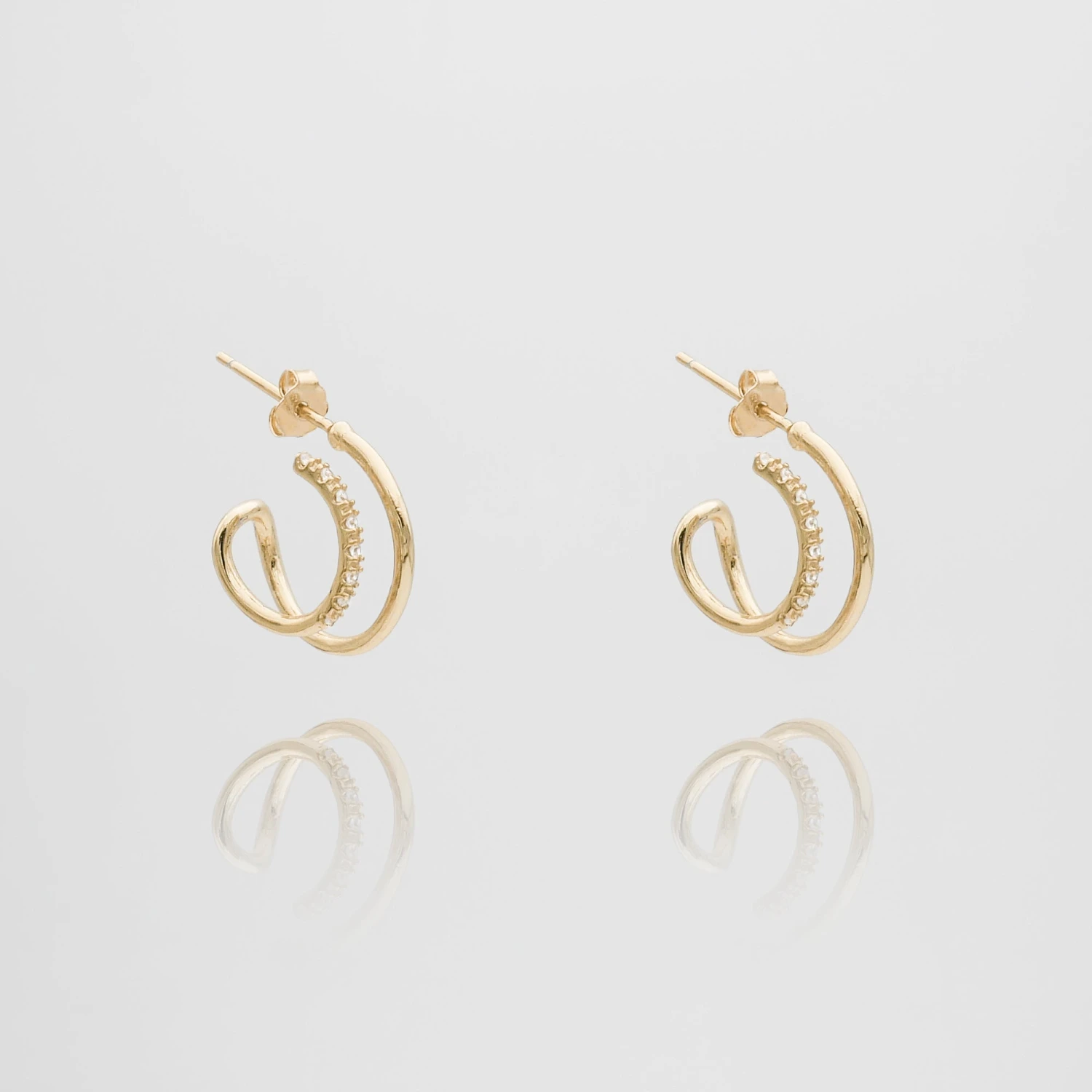These delicate Kaia hoop earrings, crafted with precision and encrusted with sparkling CZ stones, add a touch of understated luxury to any outfit. With a stud closure for easy wear, and the radiant glow of 18k gold plating, these hoops are the perfect blend of elegance and simplicity. Make a statement in style with these beautiful, gold hoops.