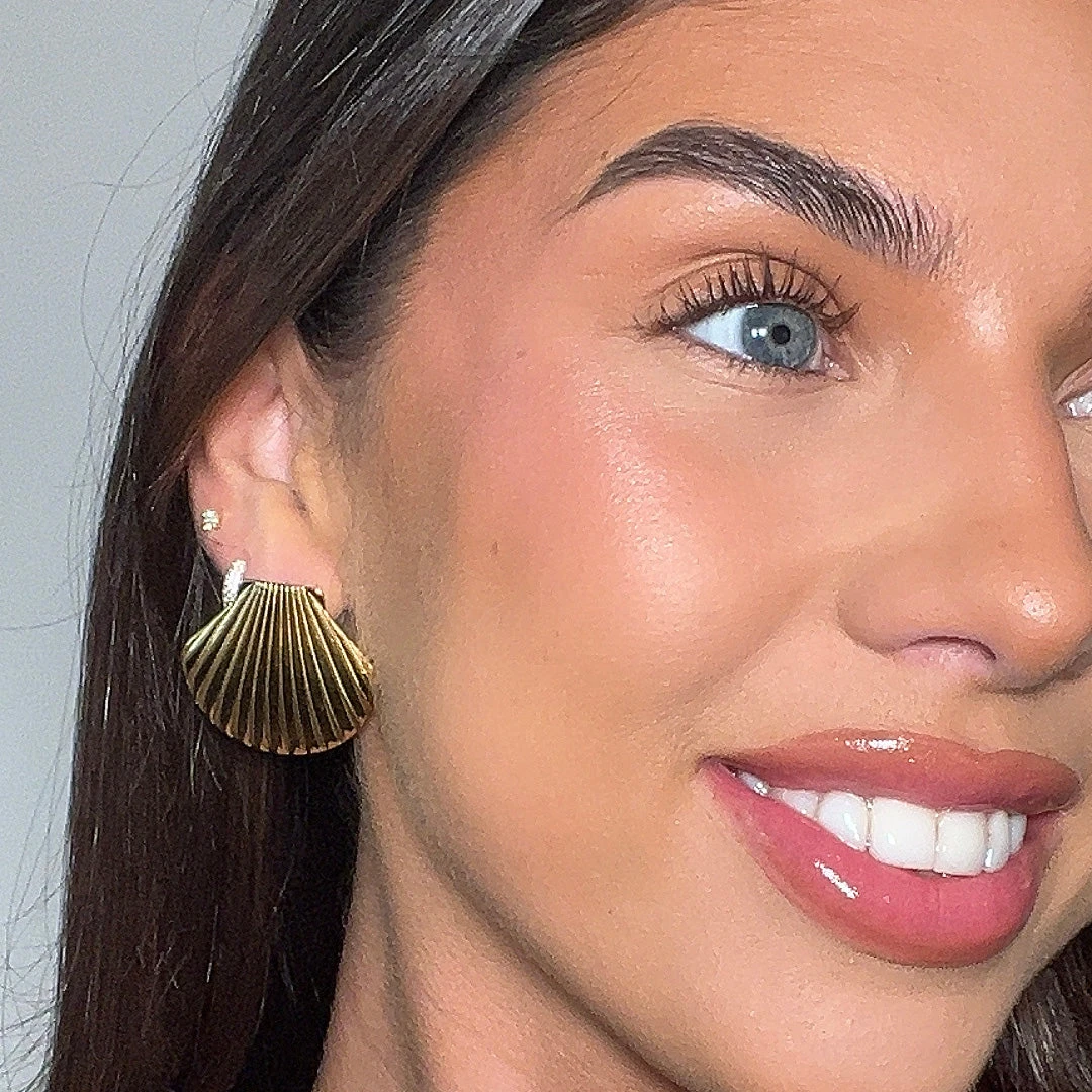 Our Kailani Seashell Earrings features a unique textured gold design with intricate shell detailing. Inspired by the beach and ocean, these earrings capture the essence of mermaid elegance. Their bold yet refined design creates the ultimate statement piece, perfect for adding a touch of coastal charm to any look.