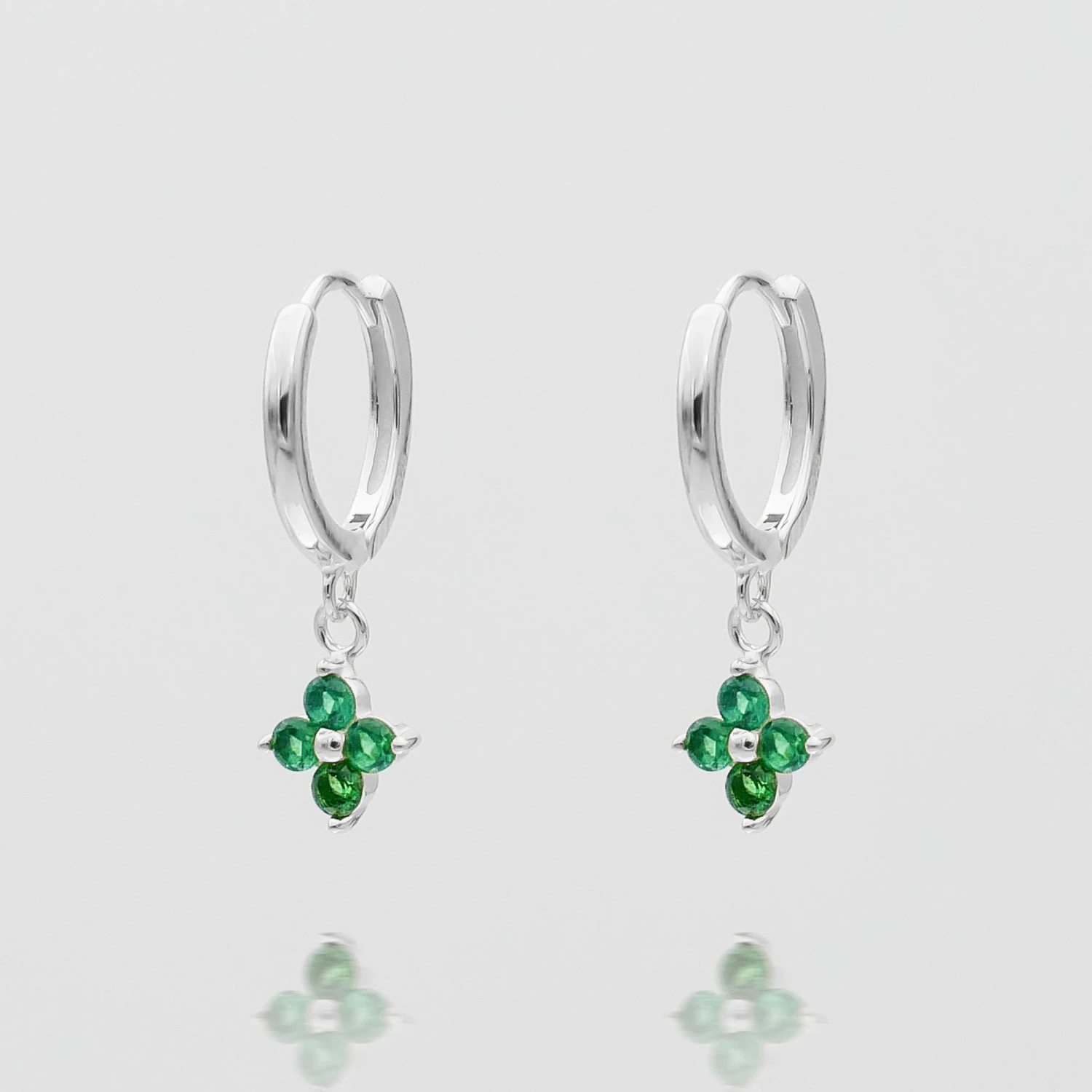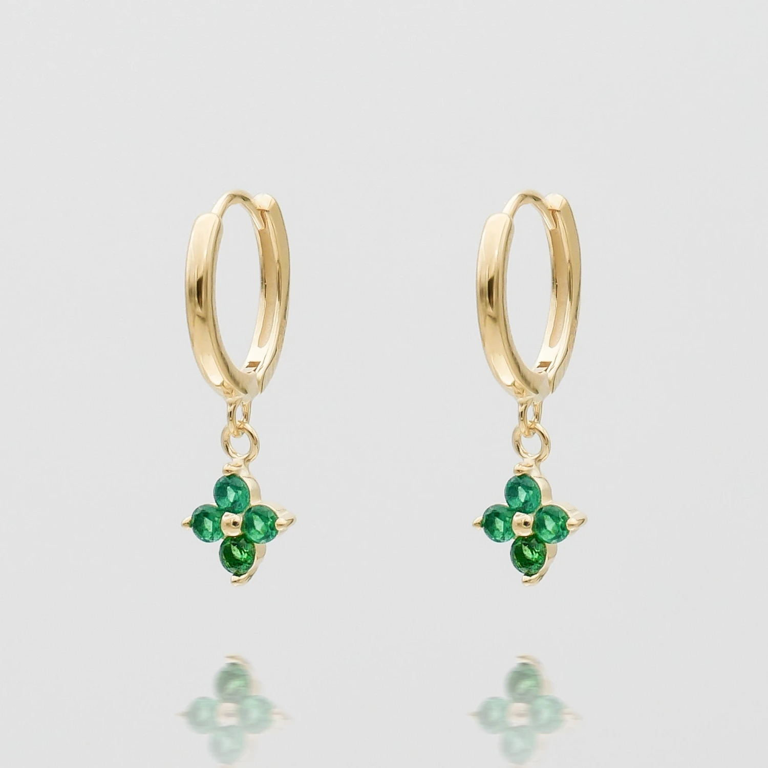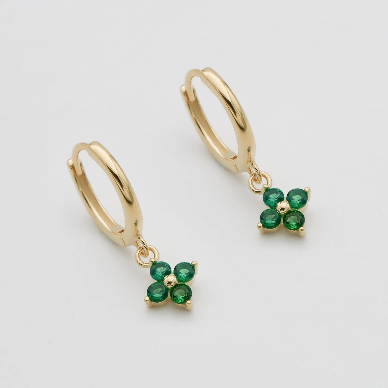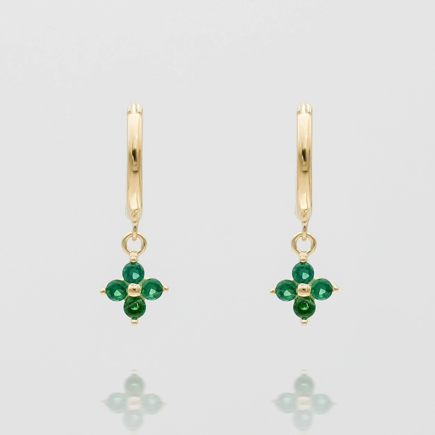 Elevate your style with these Kara Huggie Earrings, inspired by the beauty of flowers. These sophisticated huggie earrings are crafted from high-quality materials, adorned with a beautiful emerald flower-shaped charm that is sure to make a statement. Perfect for adding a subtle and elegant touch that adds just the right amount of sparkle.