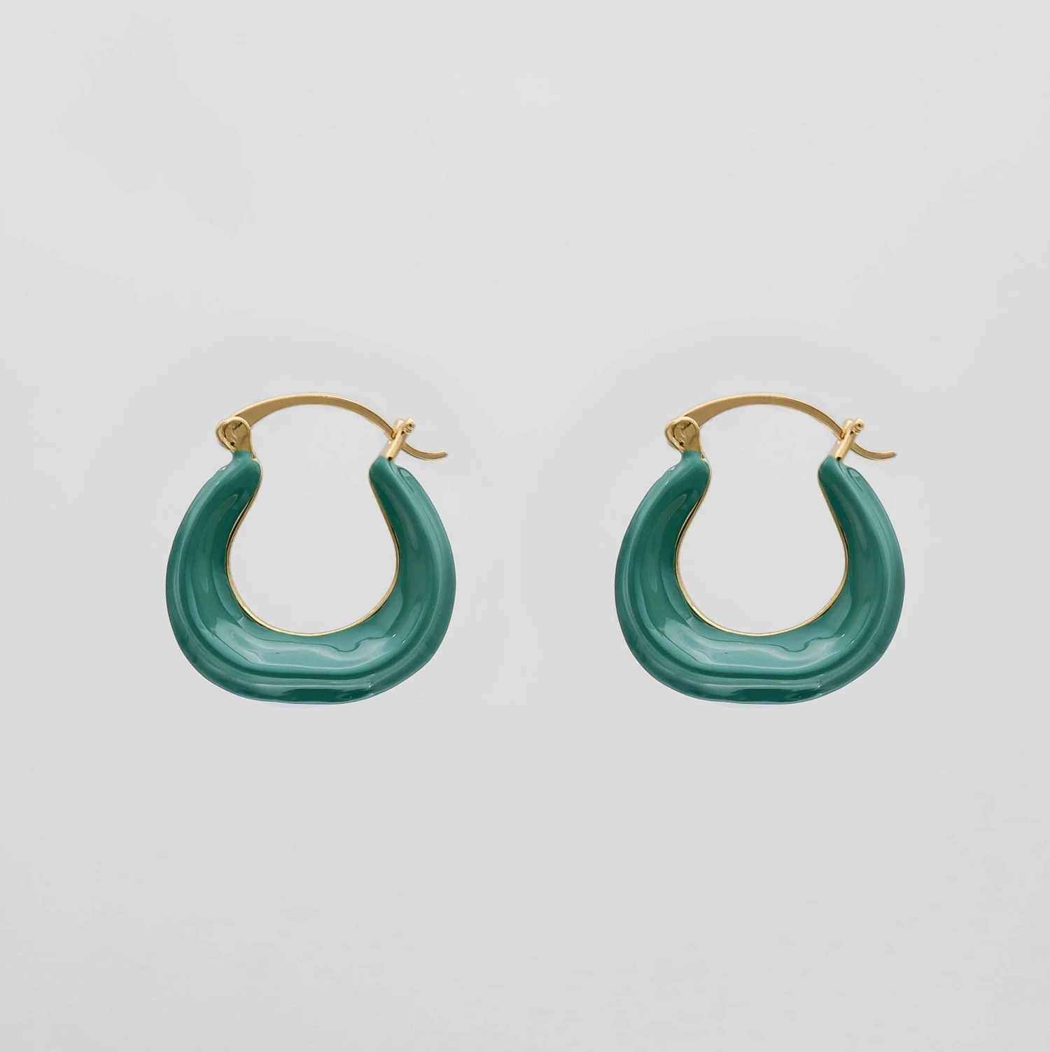 Our Katia Enamel hoop earrings are an artistic vibrant spin on our classic hoops. Featuring a pop of colour to add that extra touch to your outfit. Pair with ear-cuffs for that extra sparkle.
