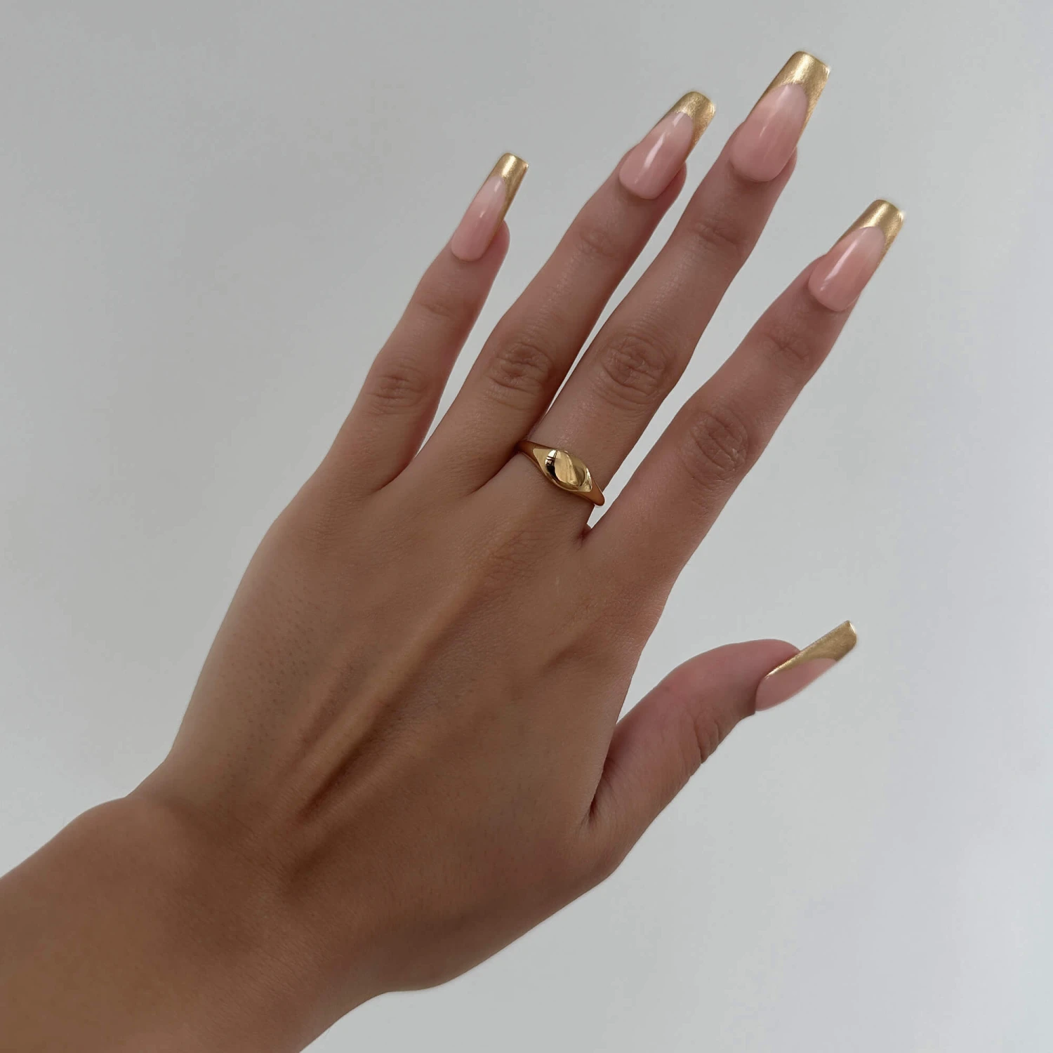 Our Kiara Ring is an iconic Gold plated Signet ring, perfect for everyday wear. With its elegant, oval design, this traditional piece is a timeless classic design.