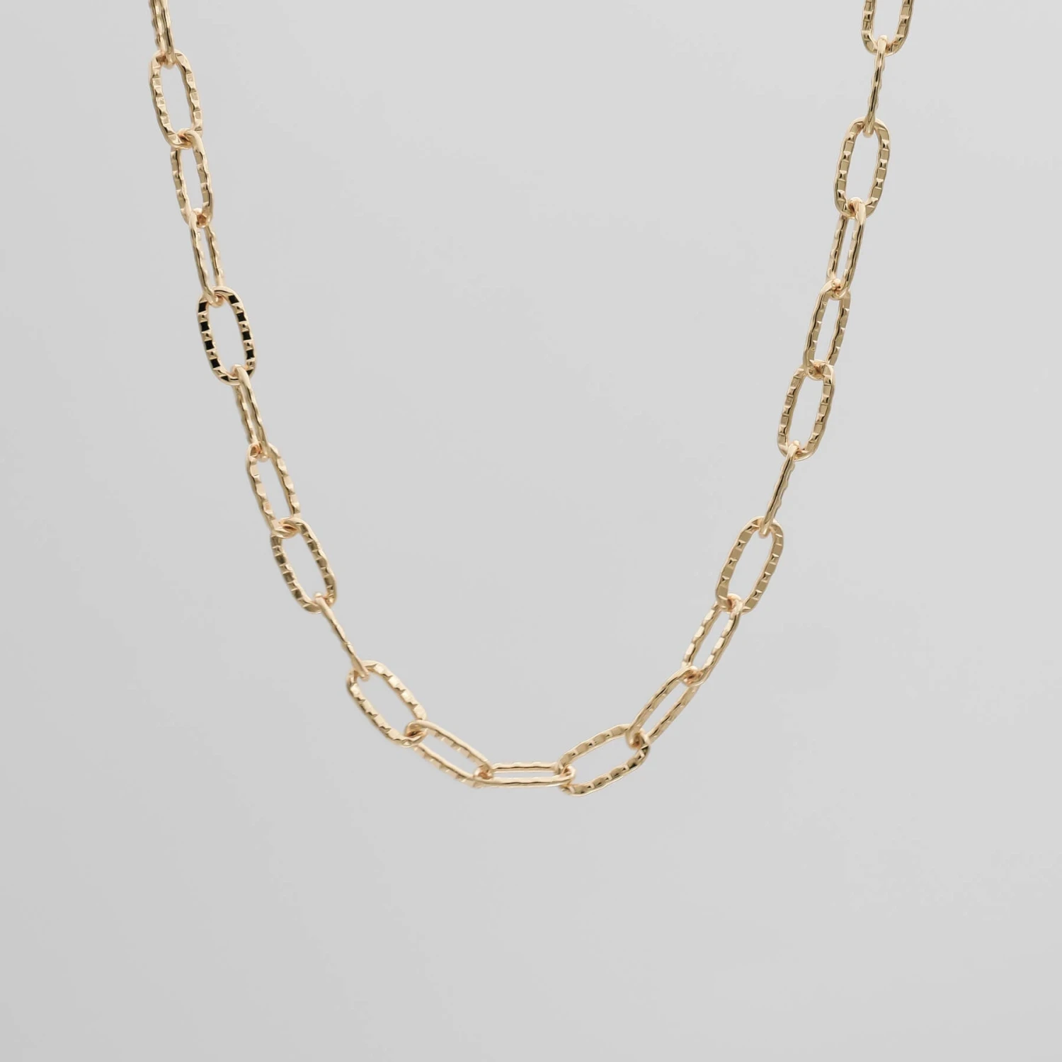 This beautiful Kira link necklace is an effortless piece, featuring a detailed, textured paperclip link design seldom to find elsewhere. This beautiful necklace adds a feminine essence and works perfectly, solo or layer with other necklaces for a mesmerising look that no one can resist admiring.