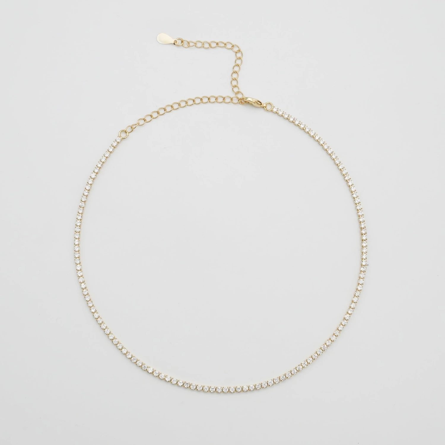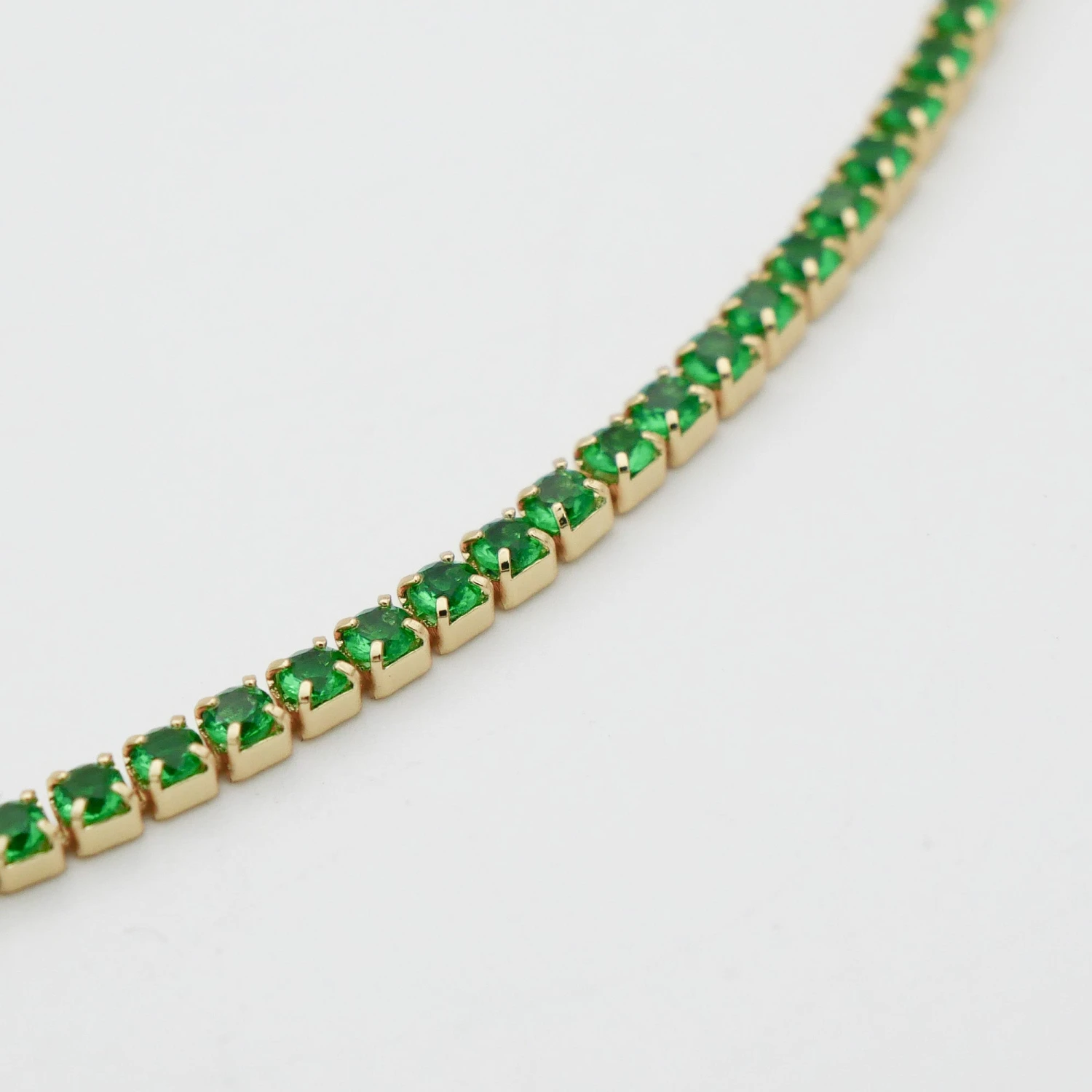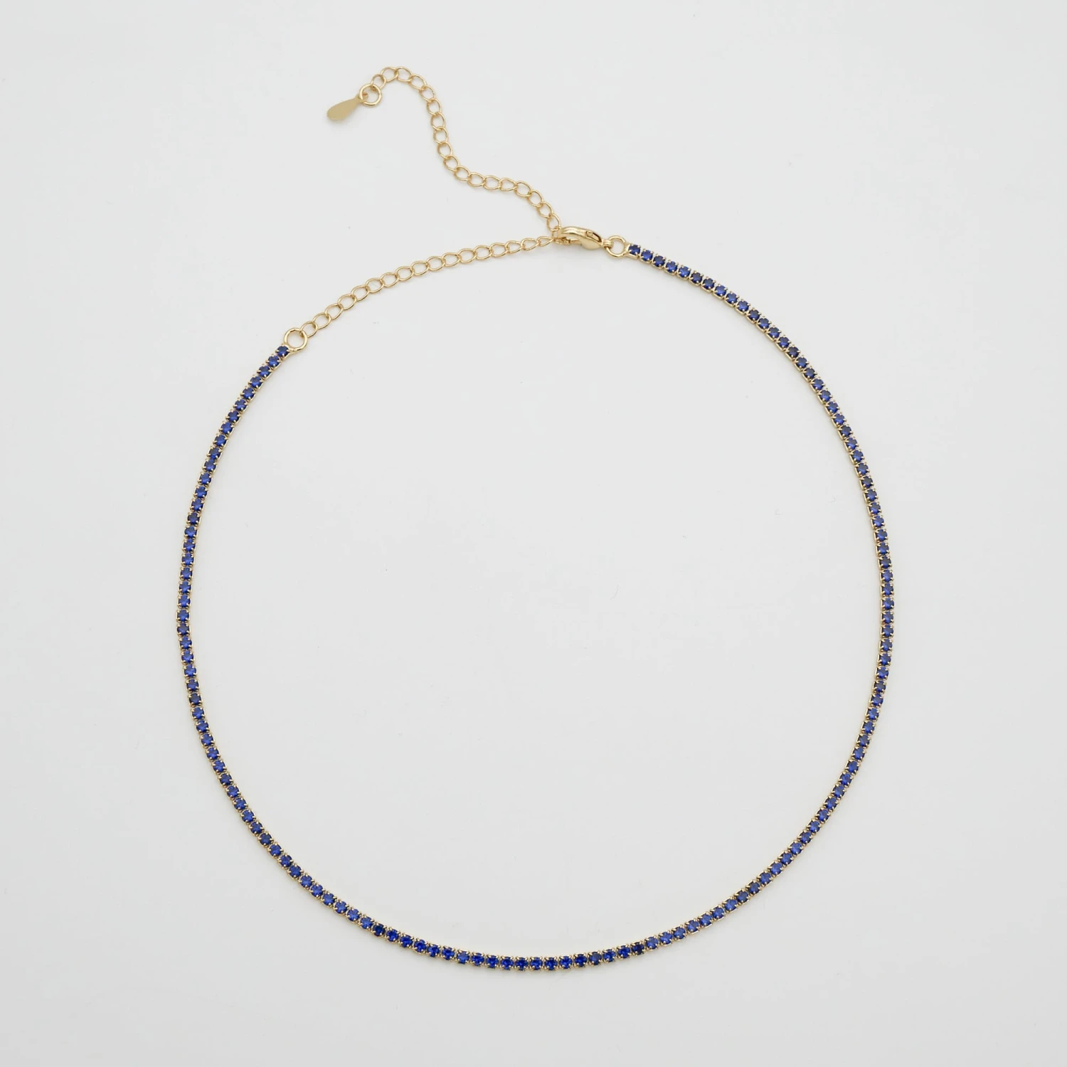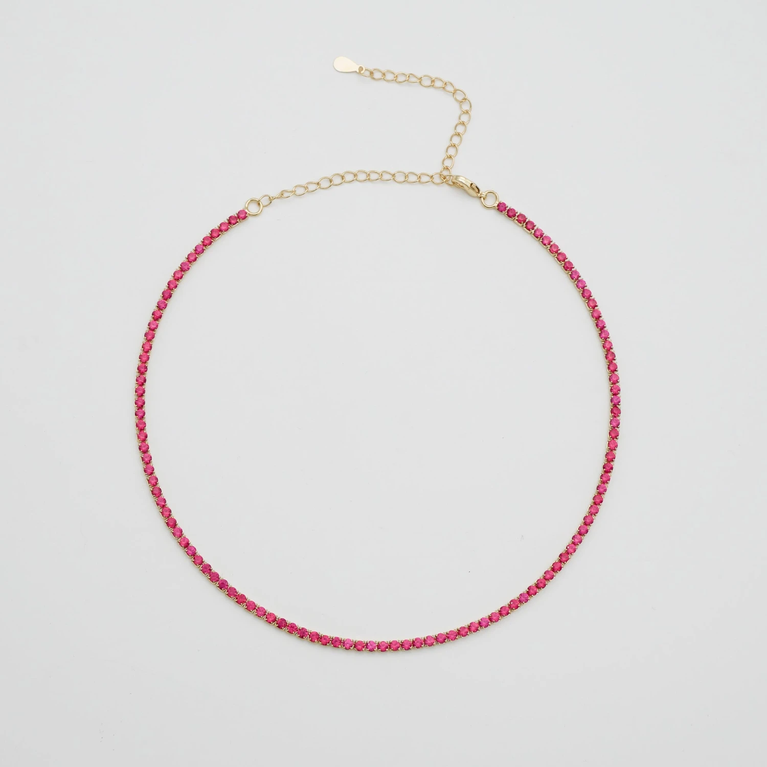 The Kylie Tennis Necklace features a timeless tennis chain design. Choose from Ruby, Clear, Emerald and Sapphire stones. The necklace is expertly-crafted for a luxurious, high-end look and feel. Wear it to a special occasion or add a touch of elegance to any outfit.