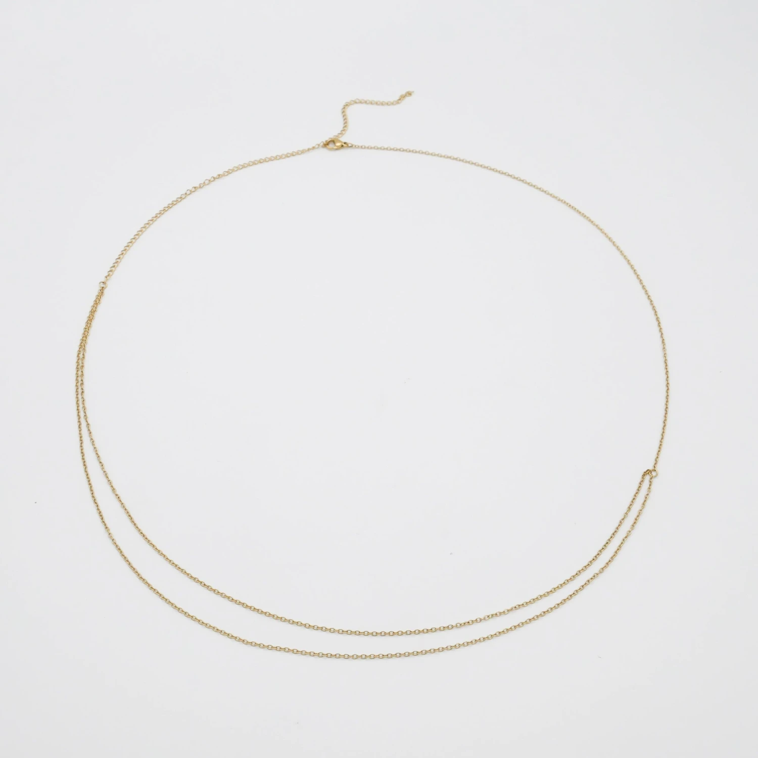 The Laina Belly Chain is the perfect blend of classic and dainty. Crafted with a double chain of gold or silver, it adds a touch of shine and elegance to any look. Perfect for adding a hint of glamour.