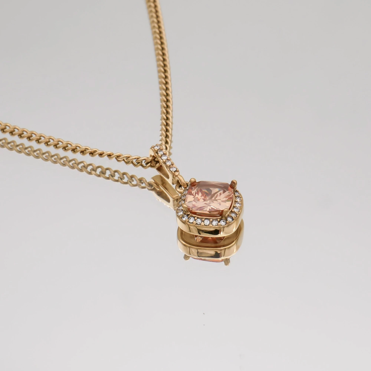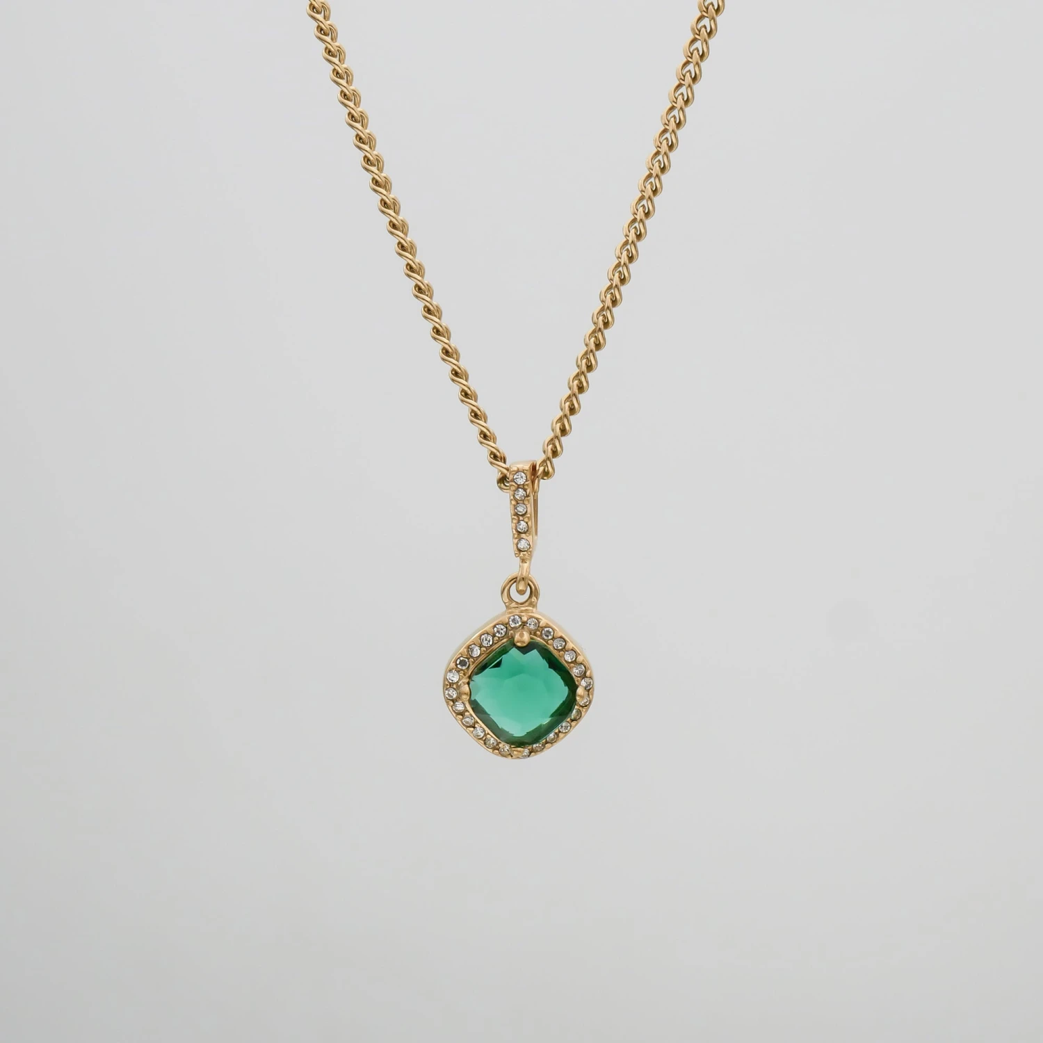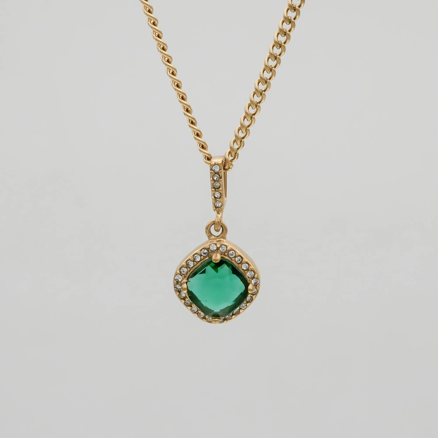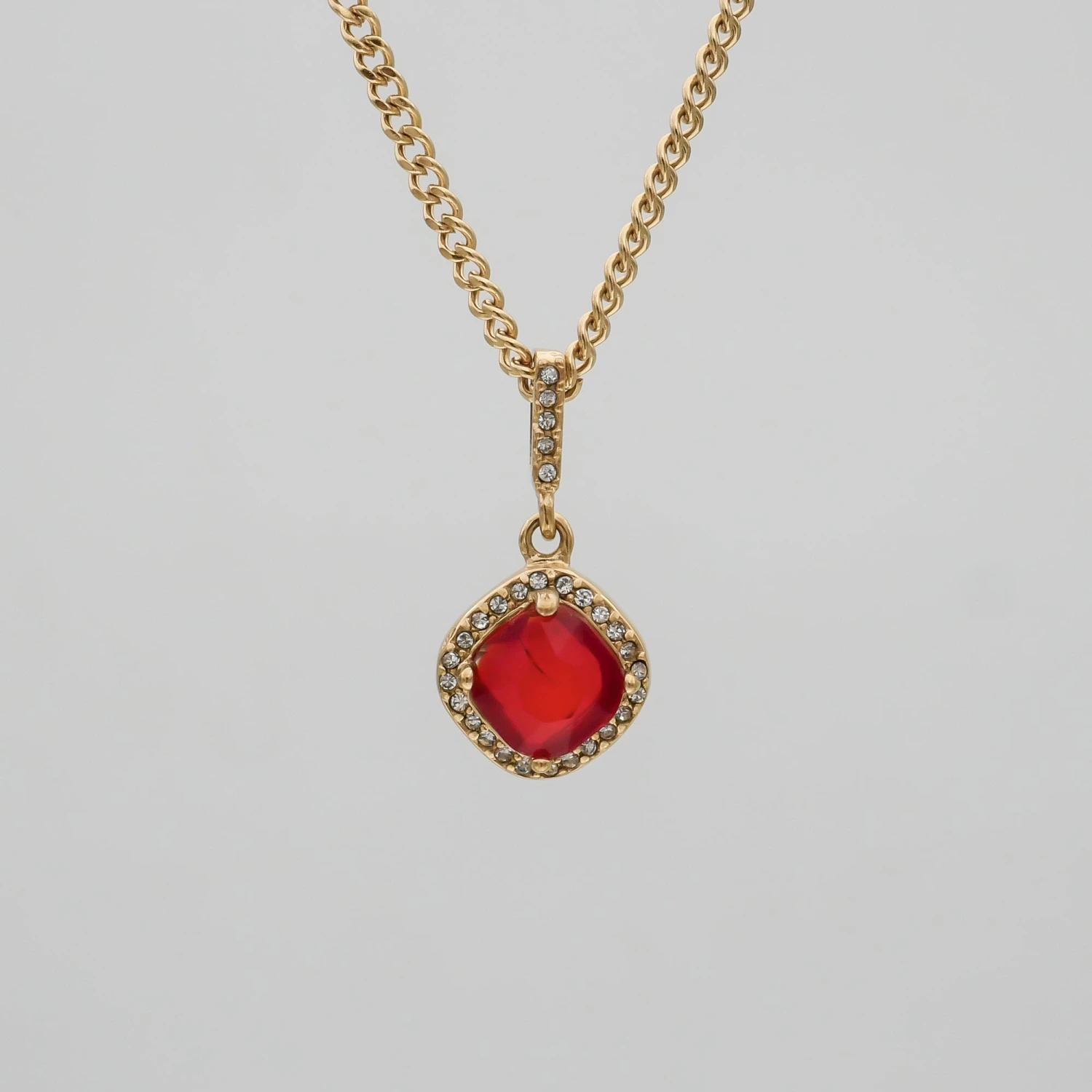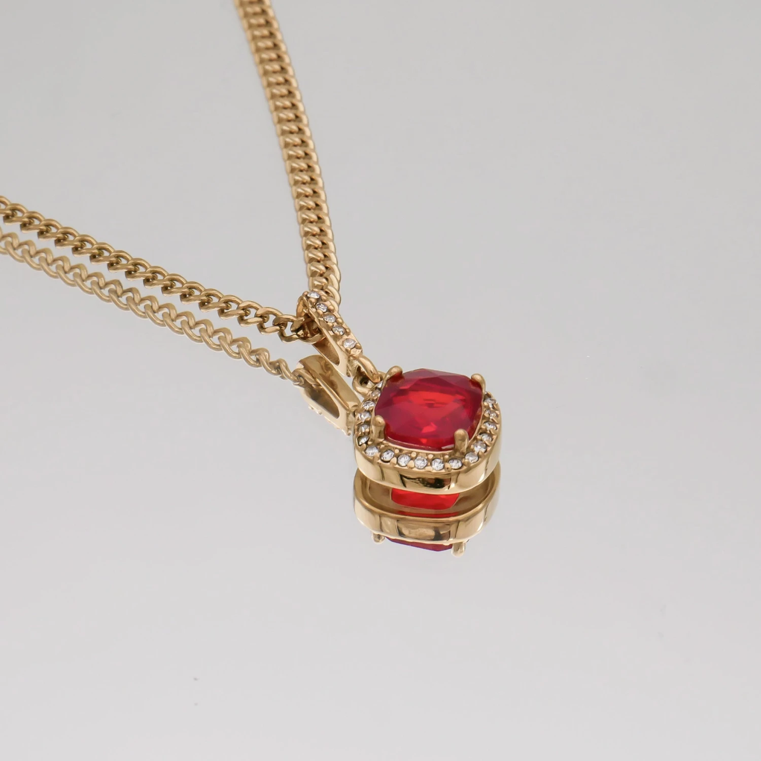 Our effortless gemstone pendant necklace comes available in three polished high-grade stones, basket set into a 18k gold plated pendant body then supported on our classic cuban chain.