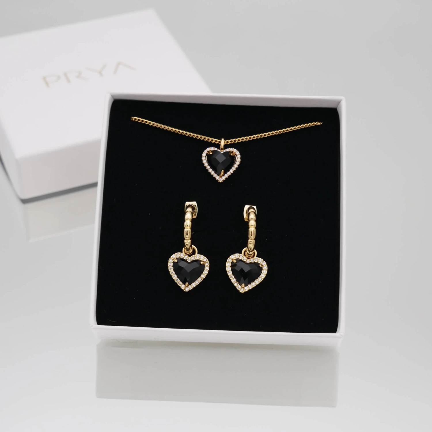 This set features the Louisa Heart Necklace and Louisa Onyx Heart Earrings