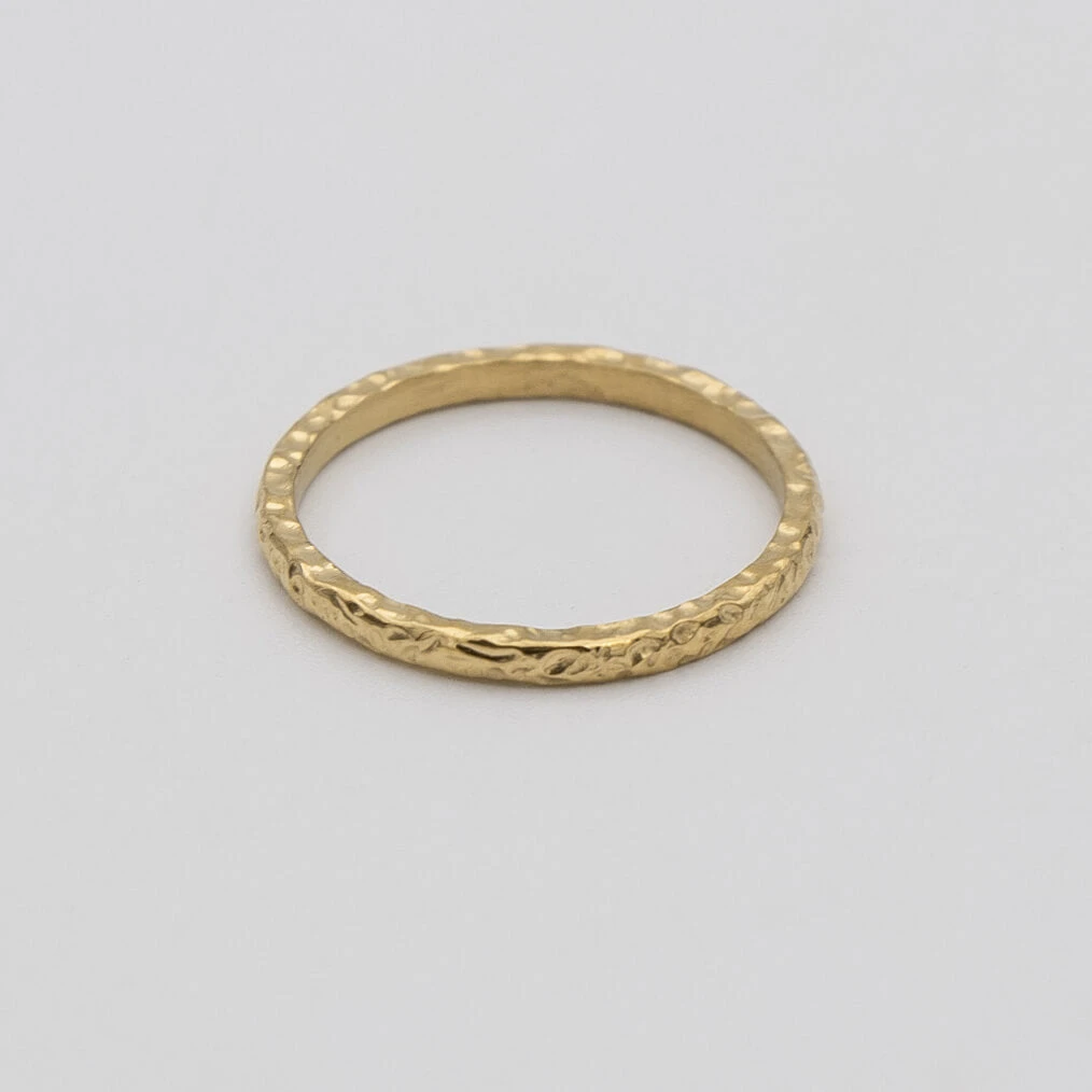 Our Luiza Ring is a dainty Gold plated band with a unique sea urchin texture, perfect for stacking or wearing alone. This hammered textured design is beautifully crafted making it a long lasting timeless statement.