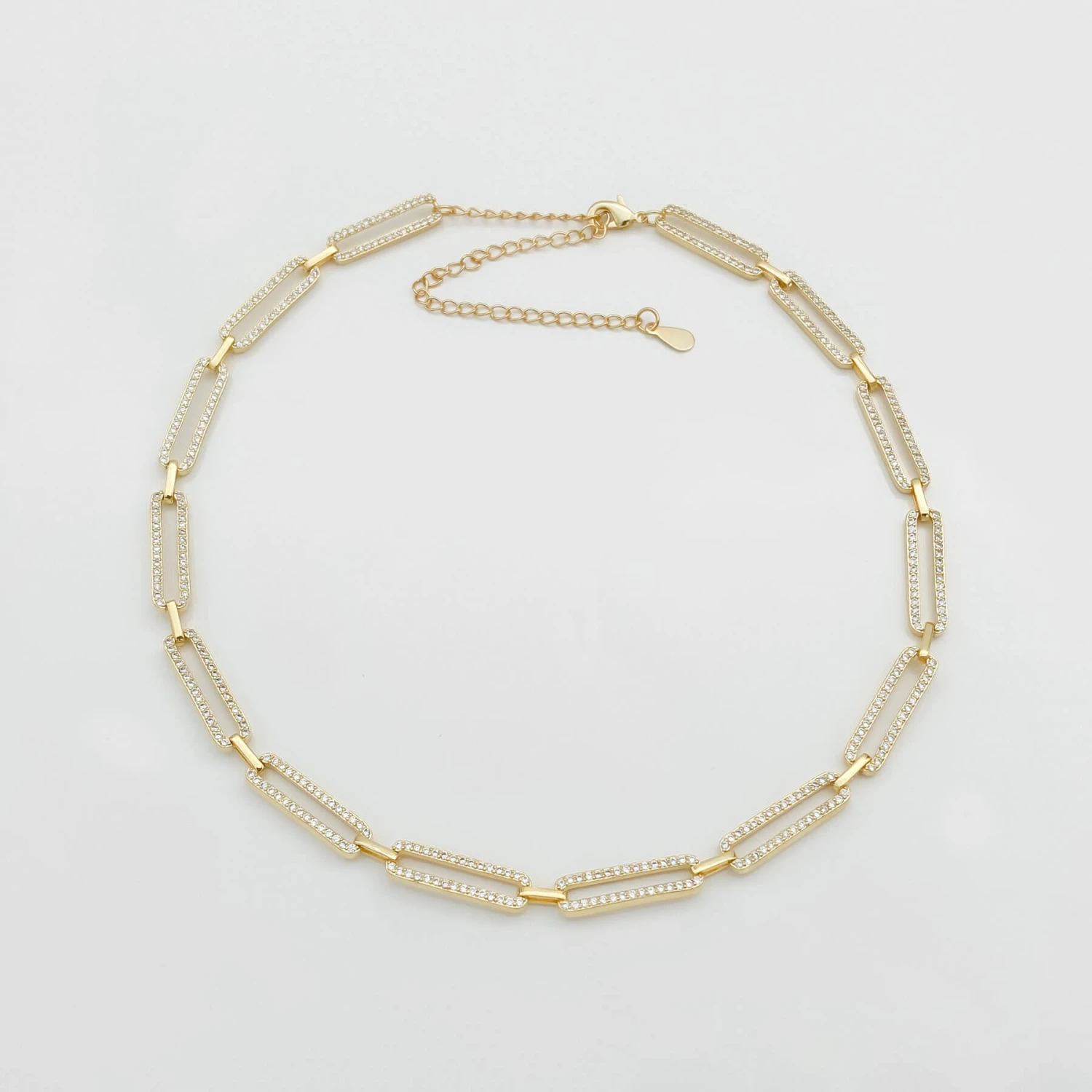 Our Lyla Link Choker is a beautiful statement piece. Crafted from 18k gold or silver filled stainless steel, it features the highest grade hand set Cubic Zirconia stones to keep it shining from all angles.