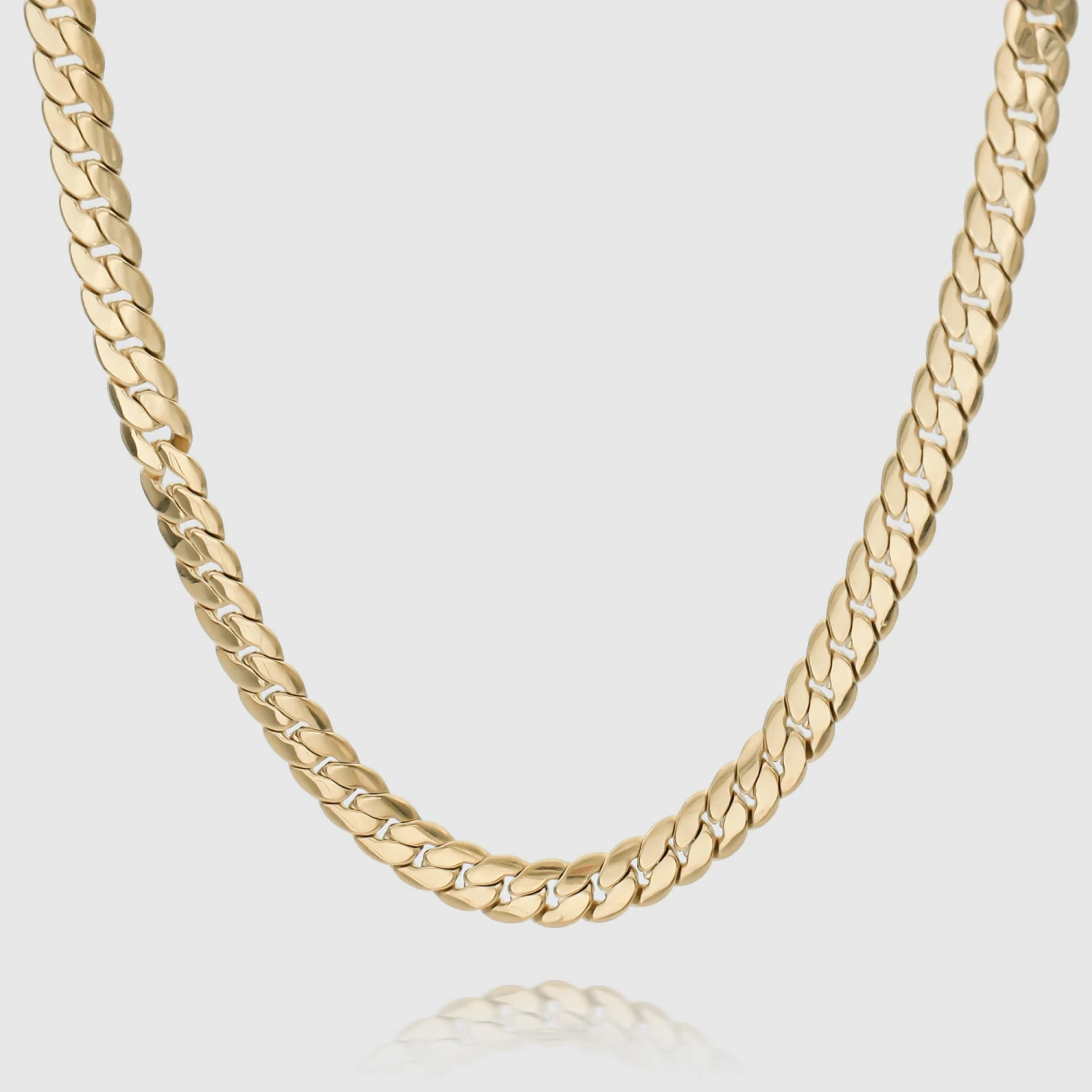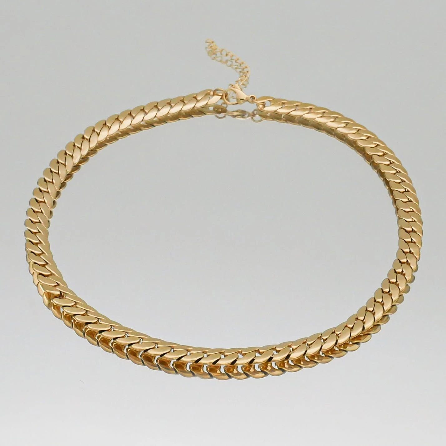 Our Mae Chain will add a statement and beauty to your look and jewellery collection. Featuring a beautifully detailed Flat link design, this chunky elegant piece works perfectly, on its own or opt for a mesmerising layered look, by adding a pendant necklace.