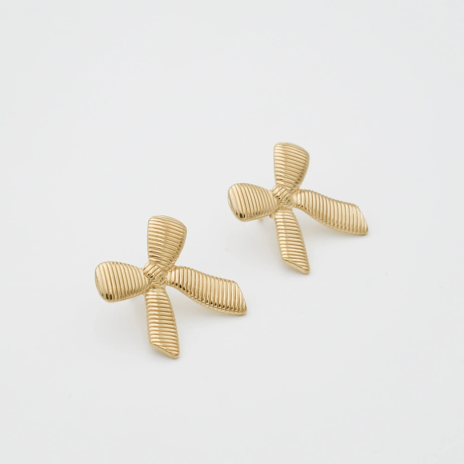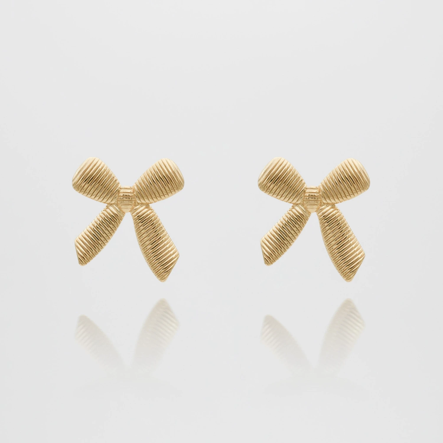 Indulge in the elegance of the Millie Bow Earrings. These ribbed bow earrings embody a cute ballet-core aesthetic, making them a must-have for any fashion lover. Stay on-trend and elevate your style to new heights with these essential earrings. Crafted from 18k gold plating and featuring a butterfly clasp closure, Millie Bow earrings offer ease and comfort for all-day wear.