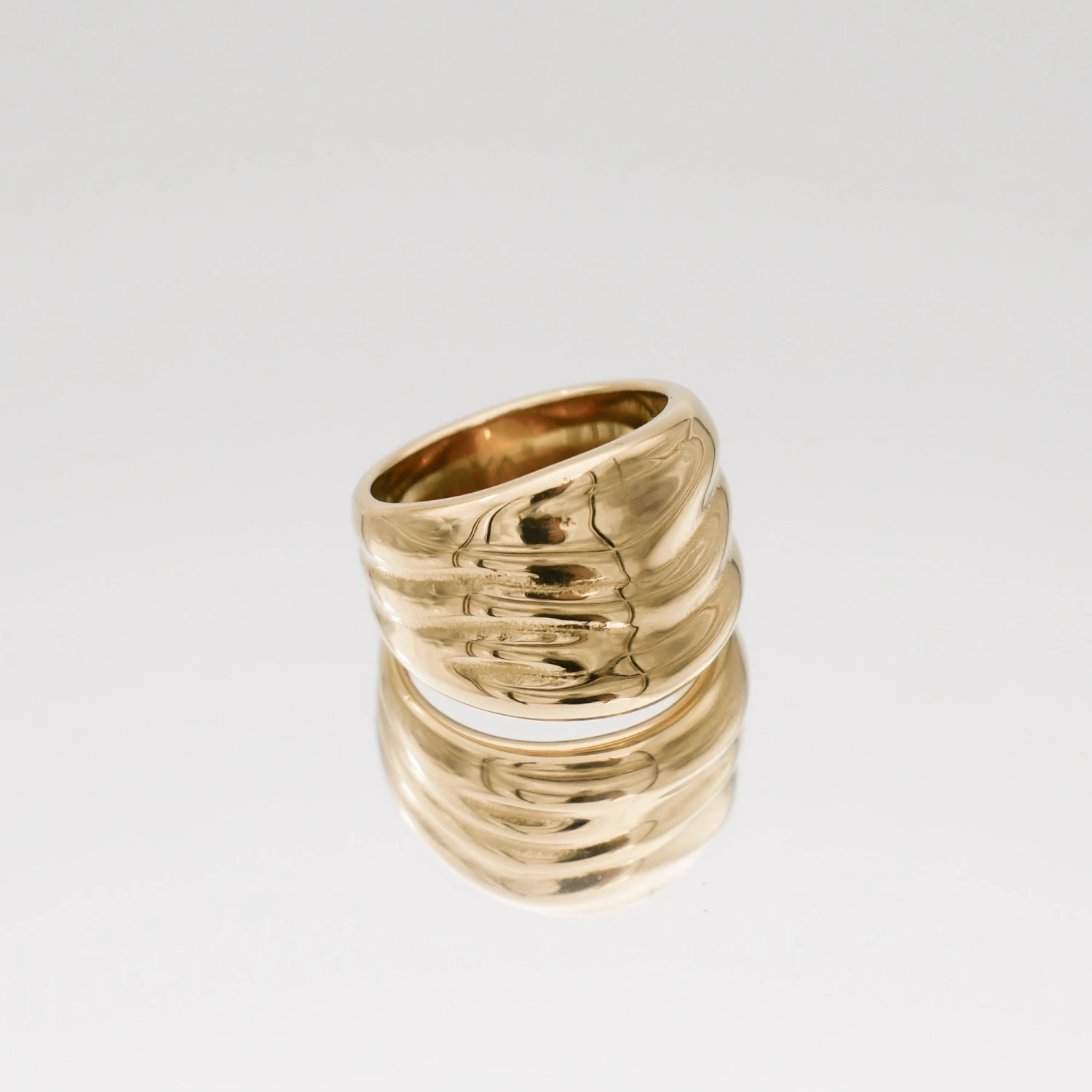 Elevate your ring game with the beautiful Mina Ring. This gorgeous statement piece features a unique textured design, making a stunning focal point for any ring stack. Add a touch of luxury and sophistication to your look with this must-have piece.