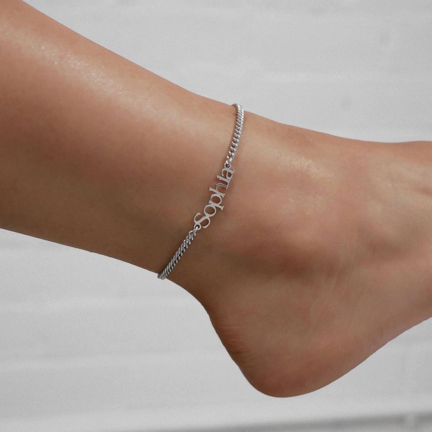 Personalise your look with our Monaco Custom Name Anklet. A beautiful, Classy Font coated in 18k gold, 14k Rose gold or sterling silver.