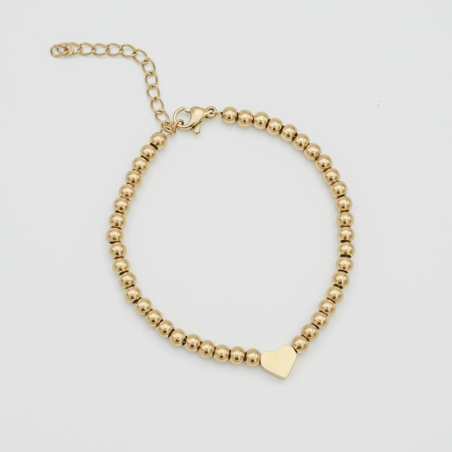 The Myla Beaded Bracelet is the perfect addition to any outfit. Featuring a heart-shaped pendant, surrounded by 18K gold sphere beads, this polished bracelet is a classic and timeless look. Its adjustable size makes it perfect for gifting. Pair with our Lena Beaded Bracelet