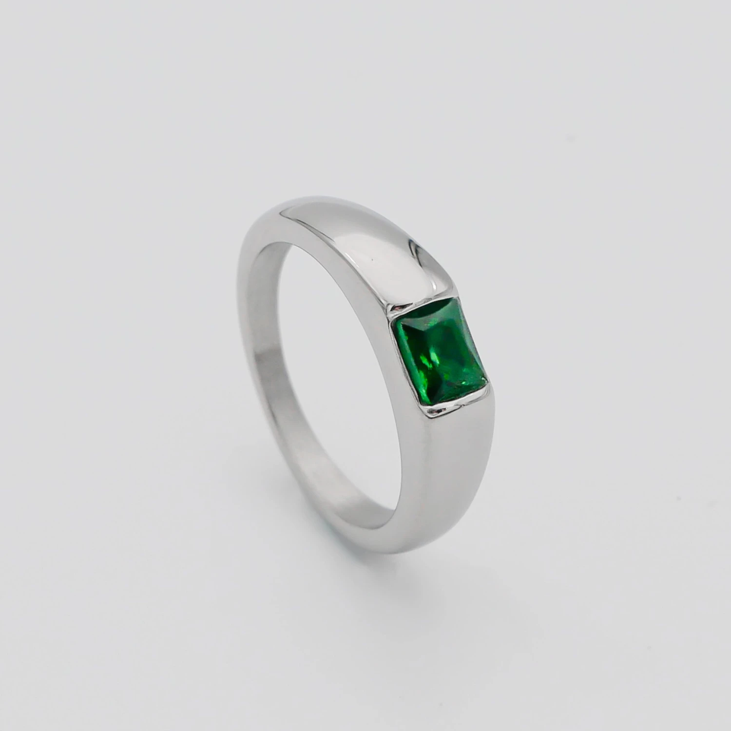 Our simple elegant and minimal-design stone signet; featuring a beautifully cut Emerald cubic Zirconia stone, delicately crested into the curvature of the ring frame. A must-have casual everyday wear, perfect for every occasion or creating ring stacks.