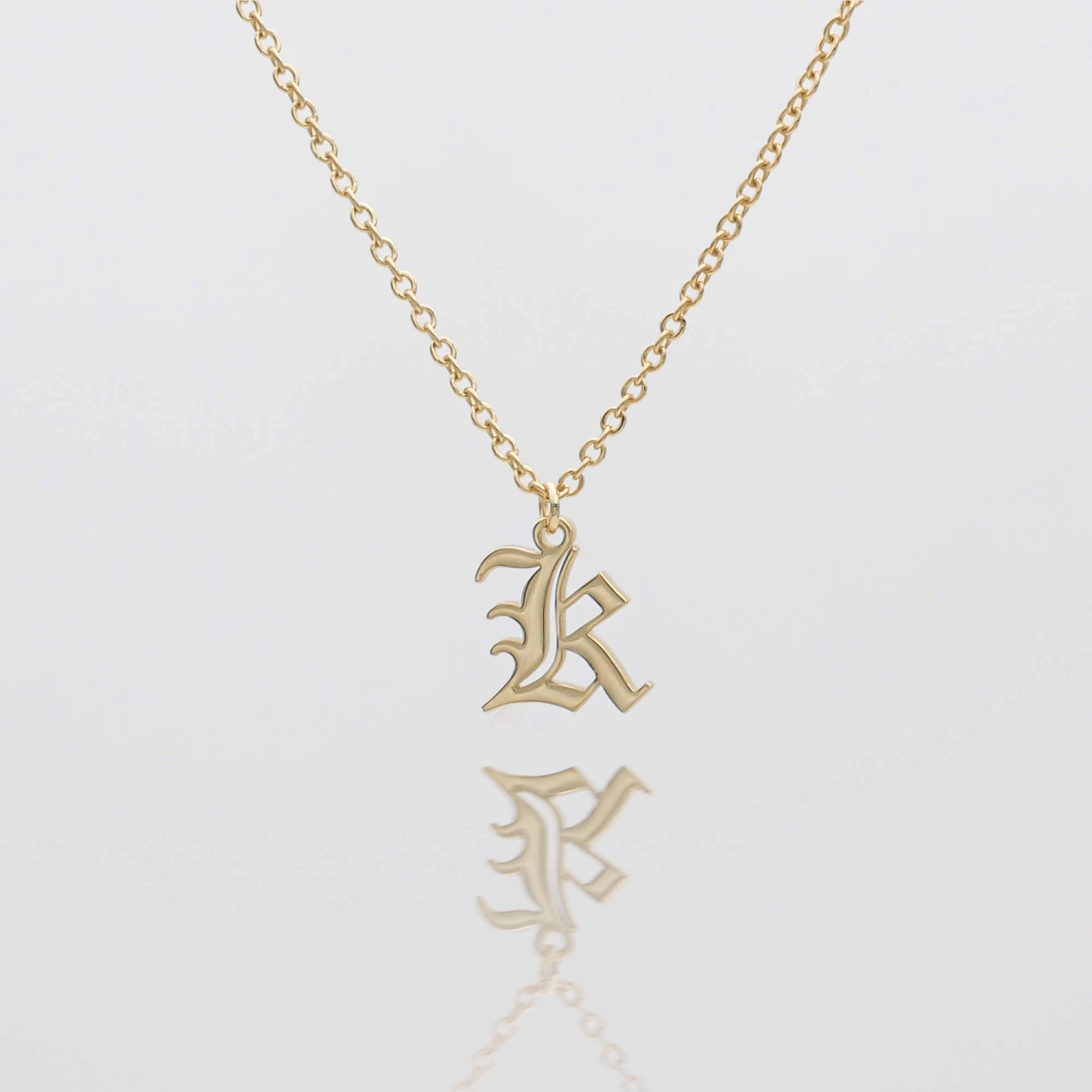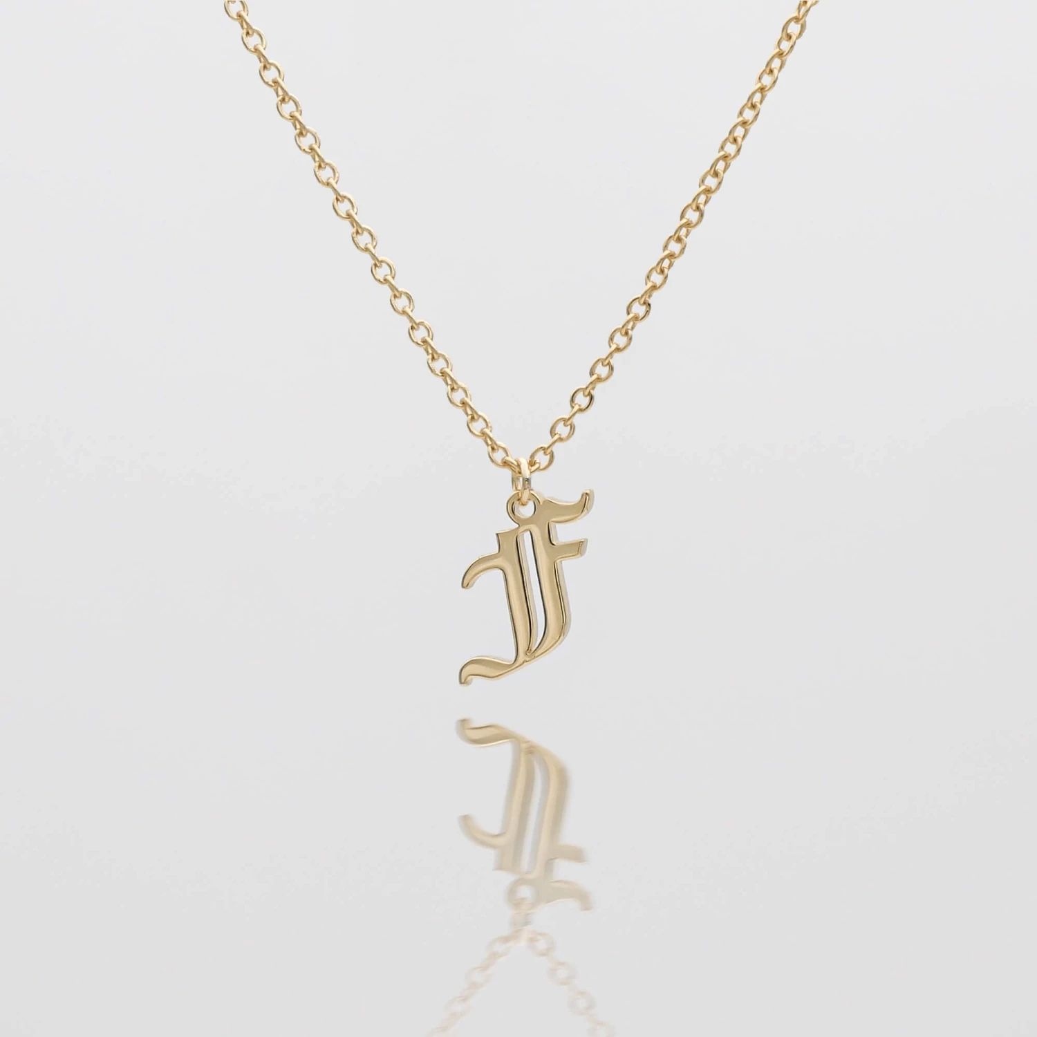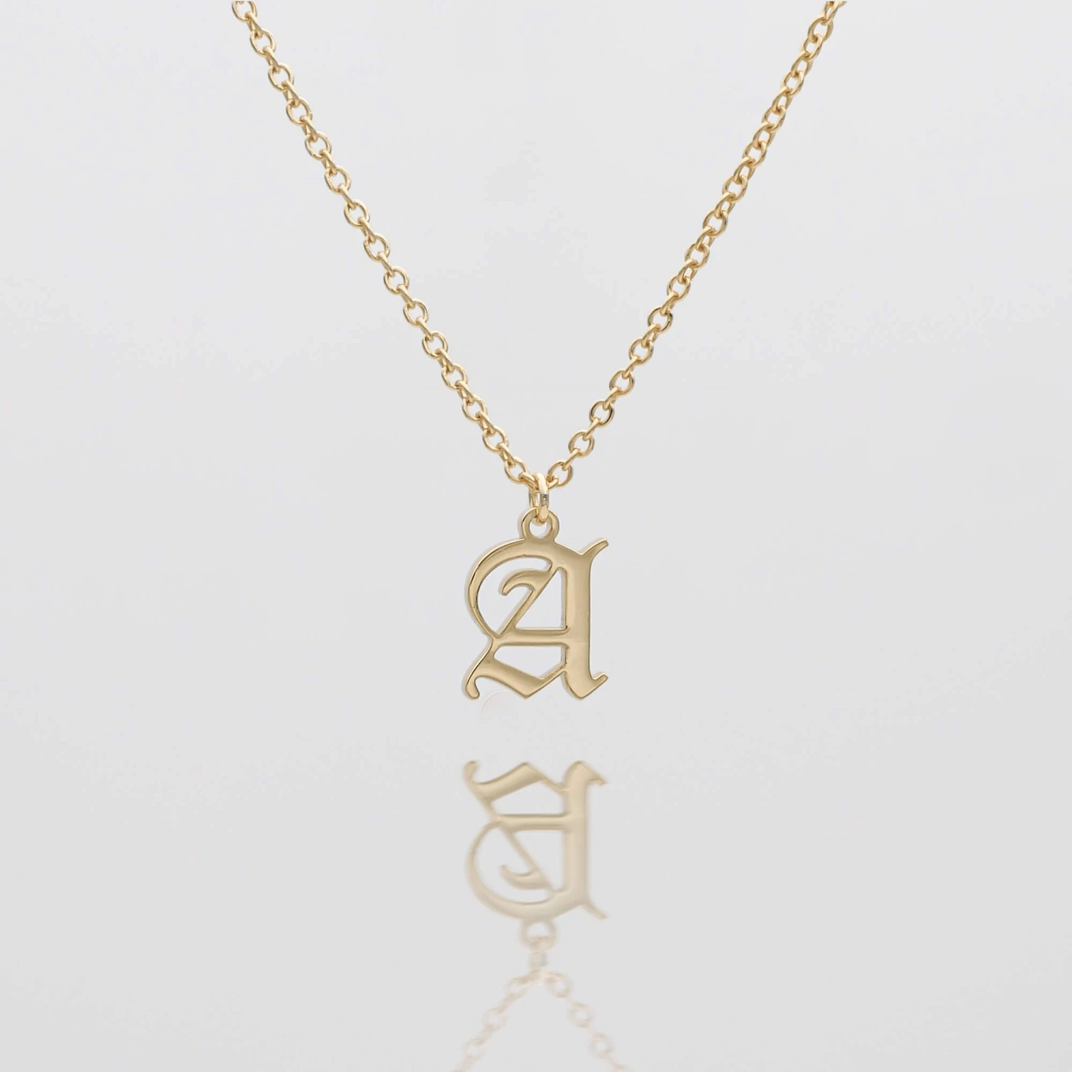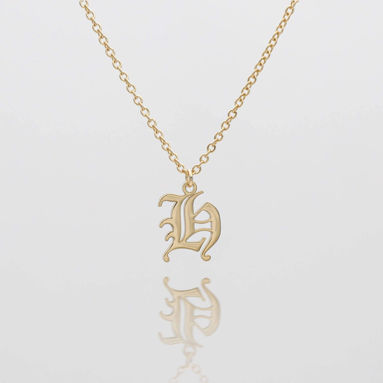 Personalize your look with our crafted old English style initial necklace. This necklace will add a timeless feel to any outfit.